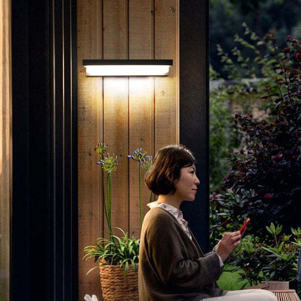 Solar Outdoor Rectangular Flat Panel Body Sensor Light Waterproof Patio LED Wall Sconce Lamp