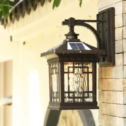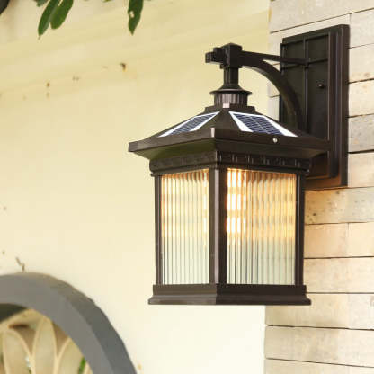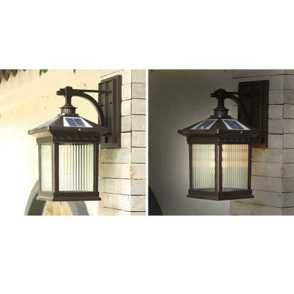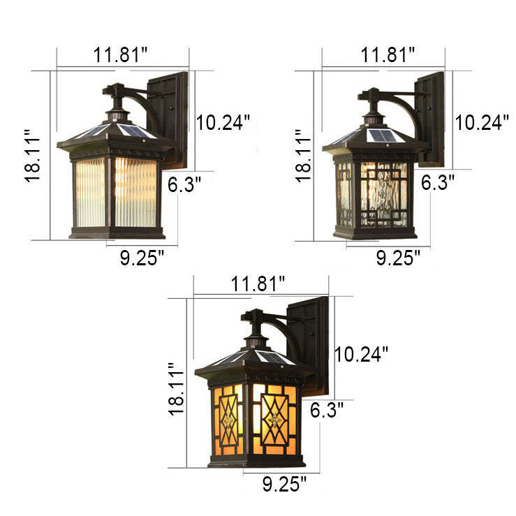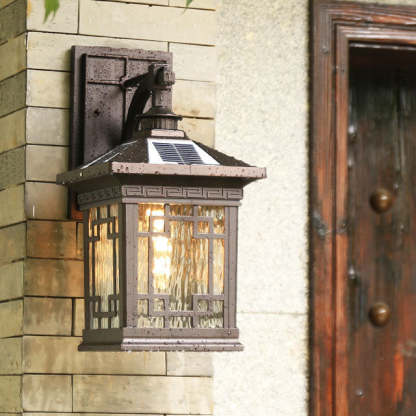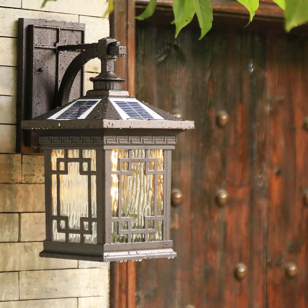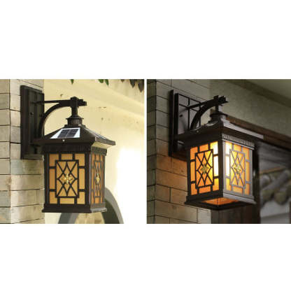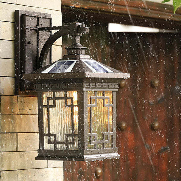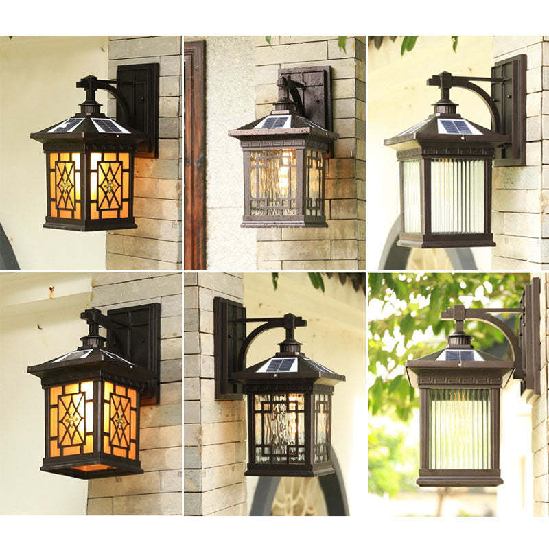 Solar Outdoor Square Cage LED Waterproof Patio Wall Sconce Lamp