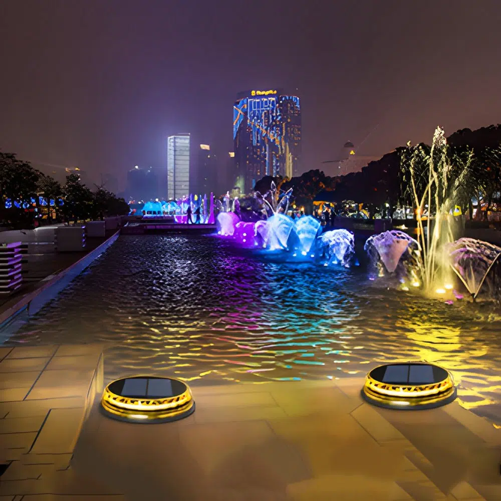 - Illuminate your outdoor spaces with our Modern Elegance Solar LED Disc Pathway Lights. Crafted for durability and style. these lights seamlessly blend into any landscape design. from garden pathways to courtyard borders. Utilizing advanced solar technology. they charge during the day and automatically light up at dusk. offering convenience and energy efficiency.