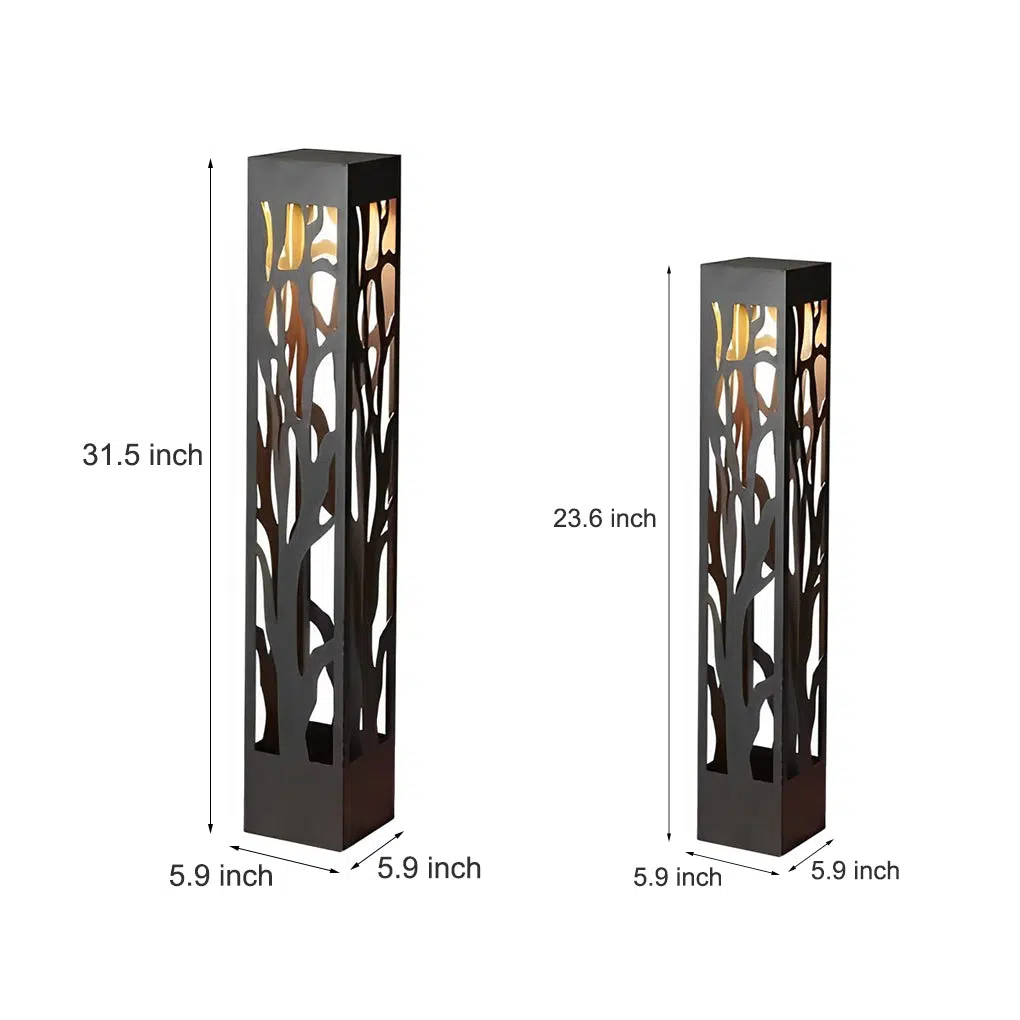 - Immerse your garden in the beauty of light with our Solar-Powered Modern Outdoor Lawn Lamp. featuring a distinctive hollow-out branch pattern. This stainless steel fixture offers resilience against rust and decay. complemented by an IP54 waterproof rating for all-weather reliability.