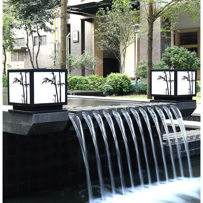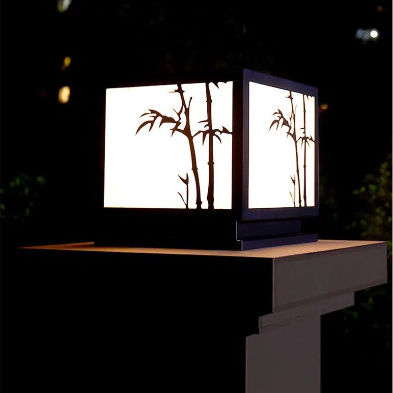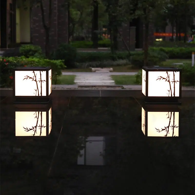 Square Bamboo Pattern Waterproof LED Modern Solar Lights Outdoor Pillar Lamp