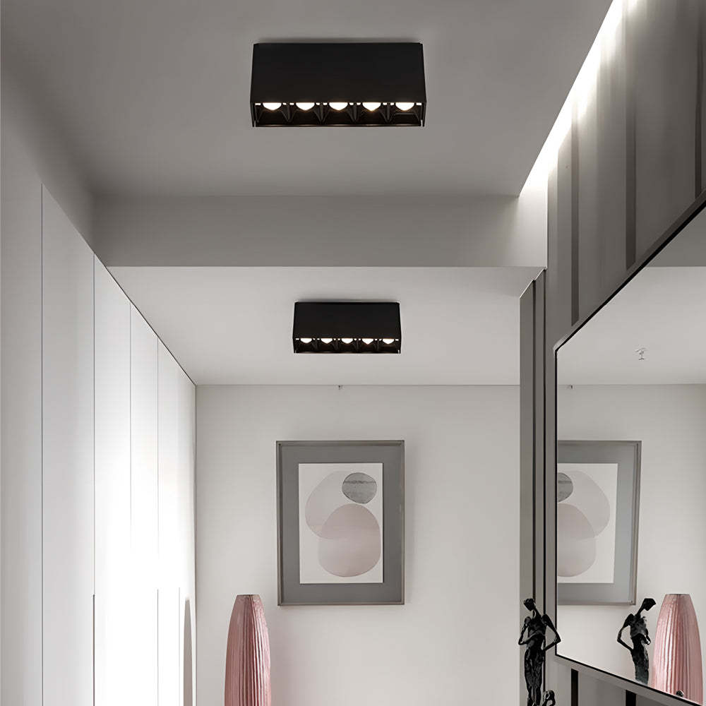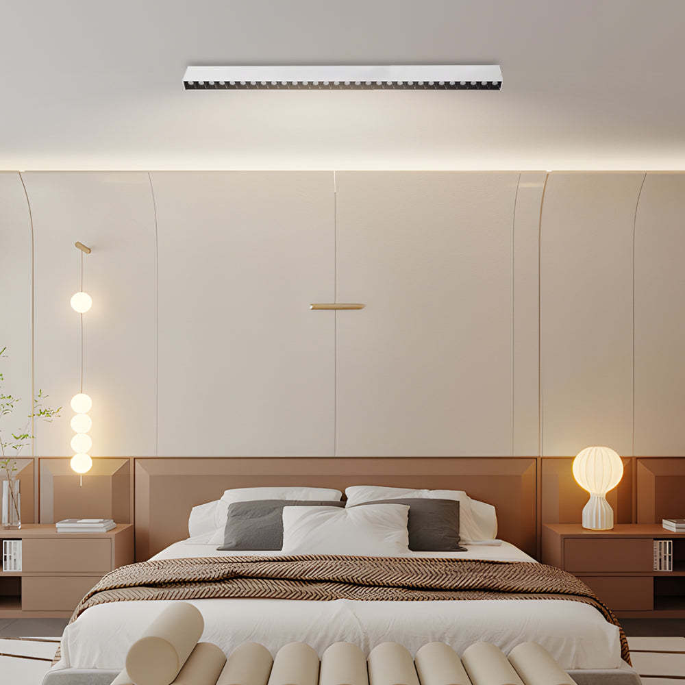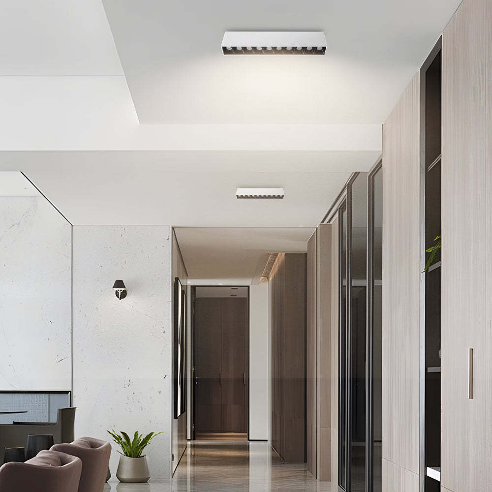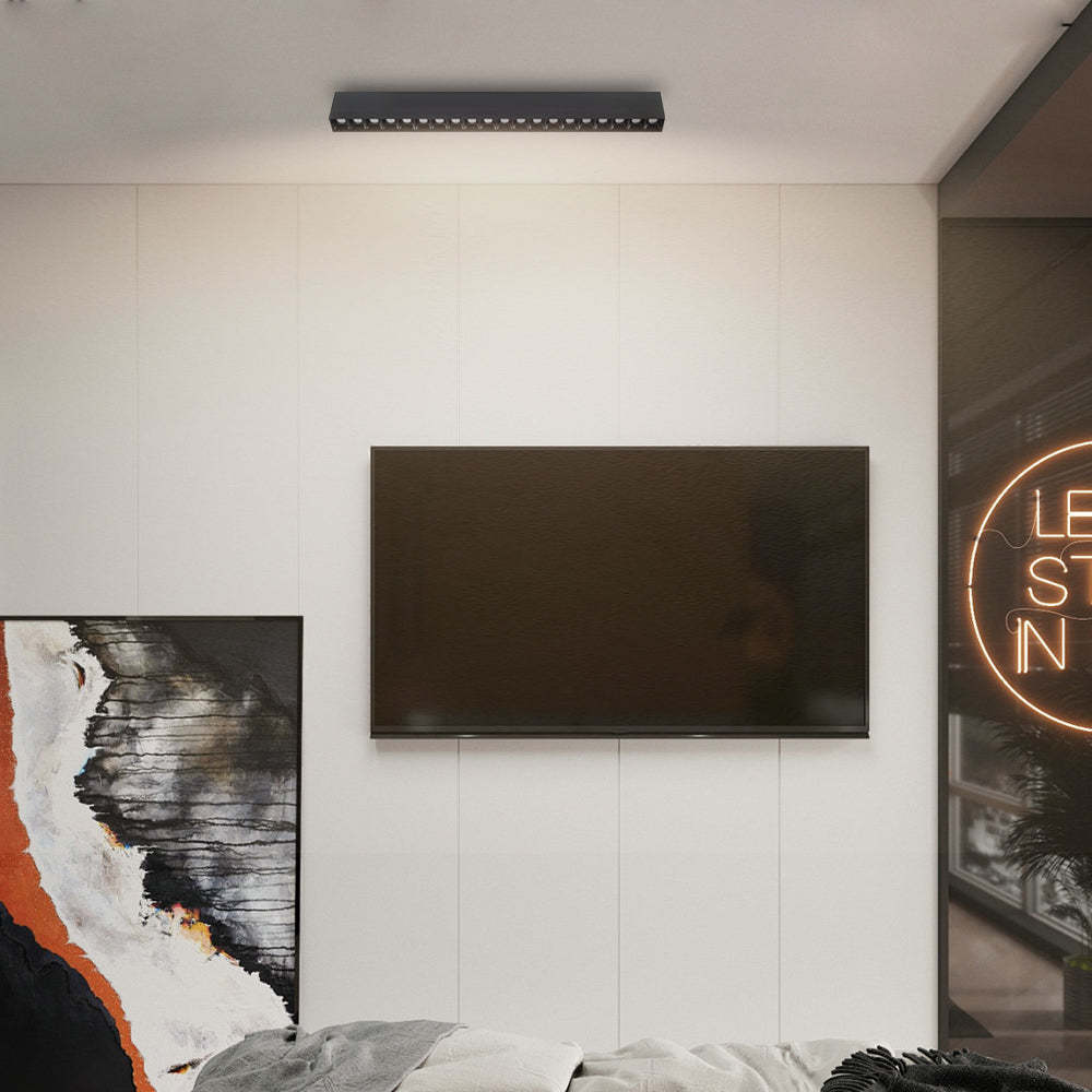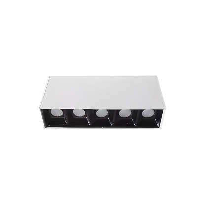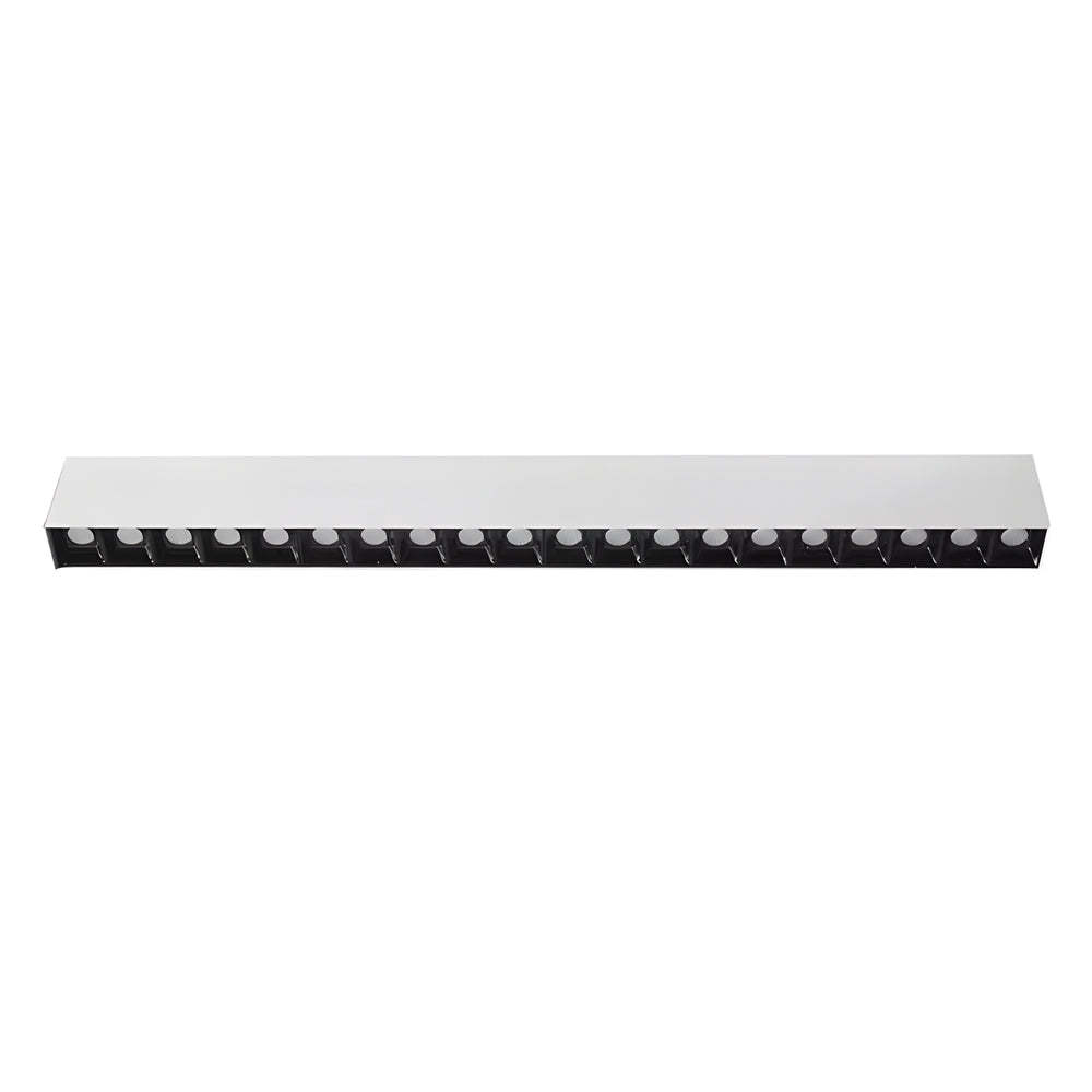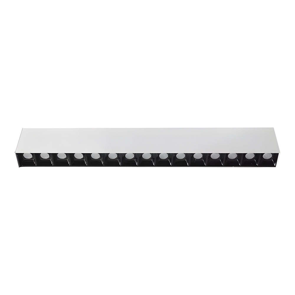 - Upgrade your indoor lighting with our Linear LED Ceiling Downlight Fixture, blending style and efficiency effortlessly. This sleek design comes in options of 5, 10, 15, 20, or 30 lights, letting you customize the brightness to suit any space. Made from durable aluminum and featuring a stylish white and black finish, this downlight fits perfectly with modern decor.