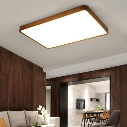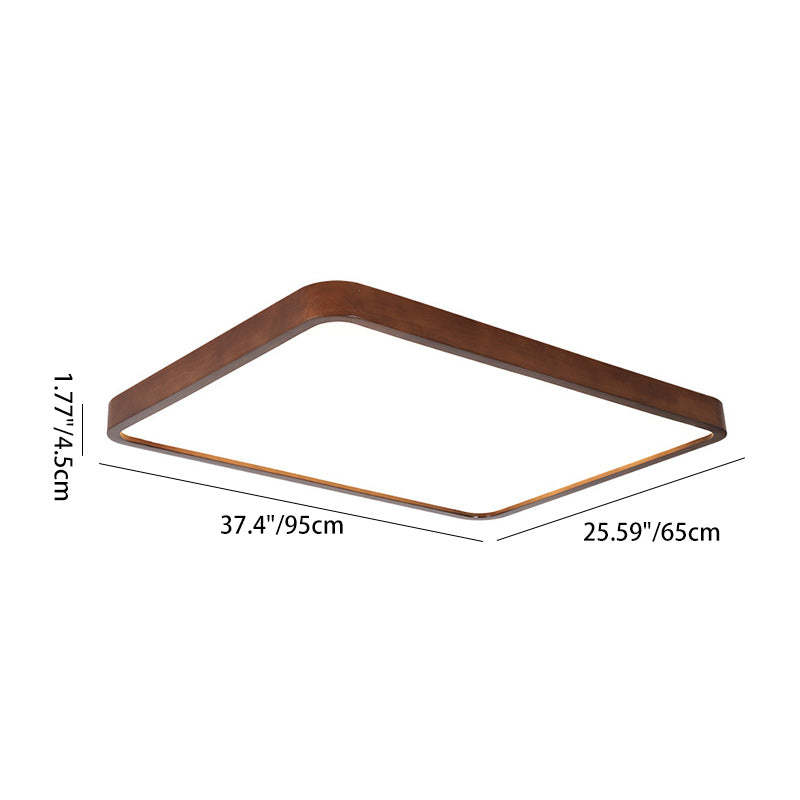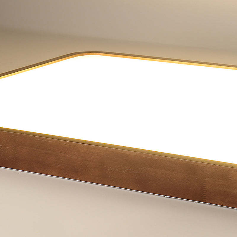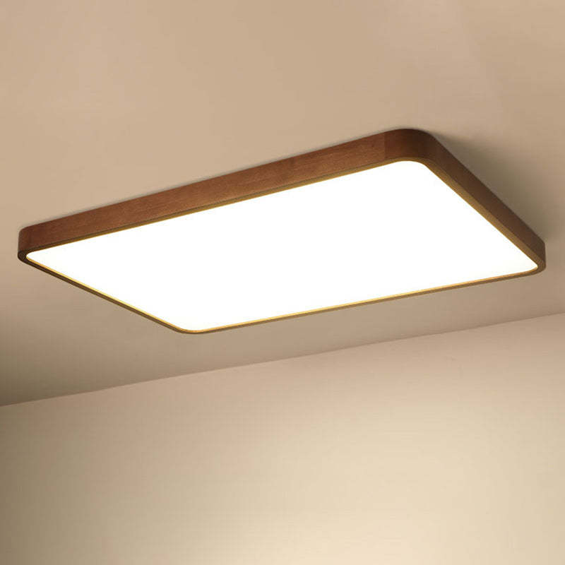 Traditional Chinese Acrylic Wood Metal Rectangular LED Flush Mount Ceiling Light For Living Room