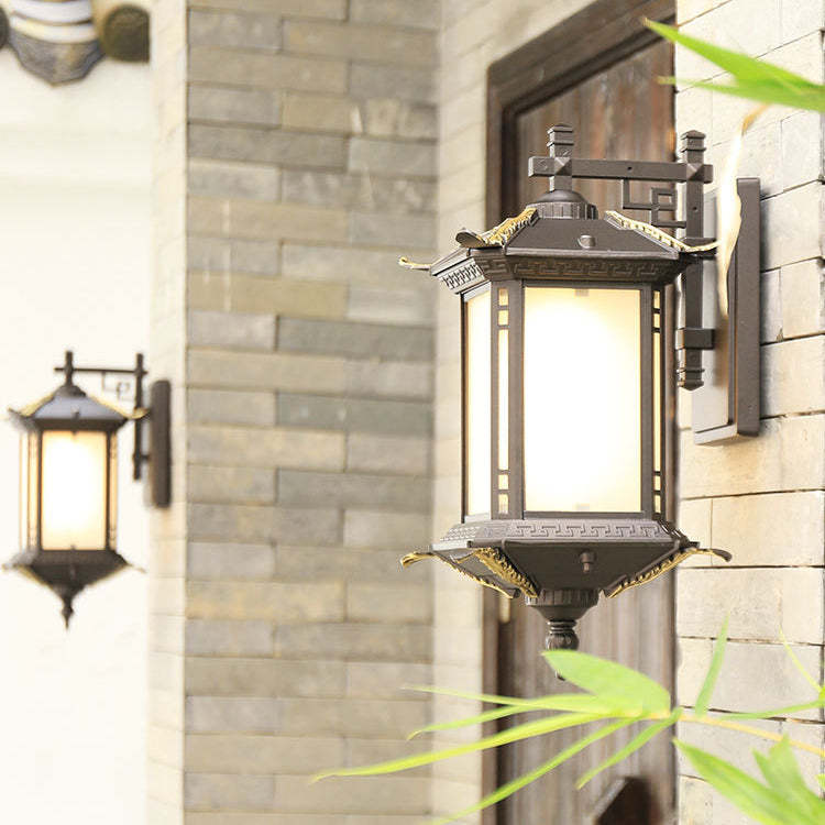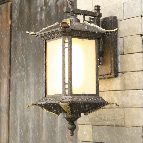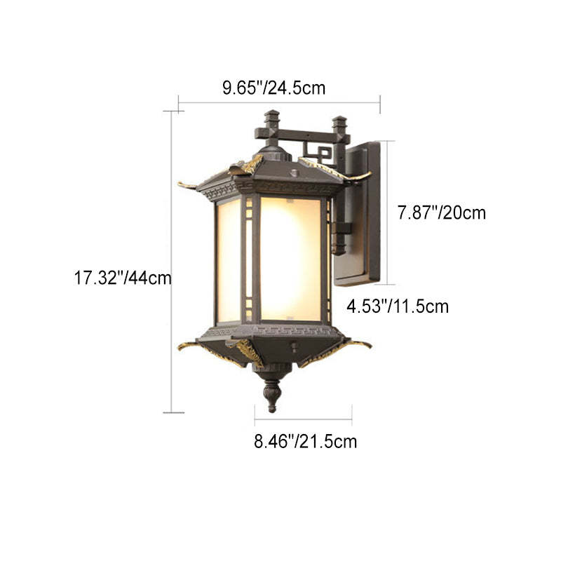 Traditional Chinese Aluminum Rectangular Tower 1-Light Outdoor Wall Sconce Lamp For Garden