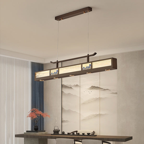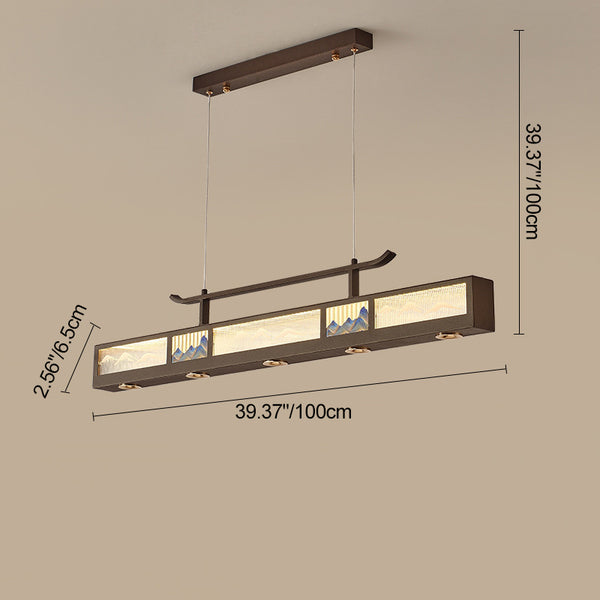 Crafted from iron. acrylic. and stainless steel. this traditional Chinese chandelier features a clean rectangular silhouette with excellent light transmission. Its anti-corrosion. fade-resistant design and warm brown finish make it perfect for adding a serene. modern Zen touch to dining rooms. tea spaces. or living areas.