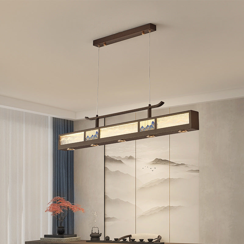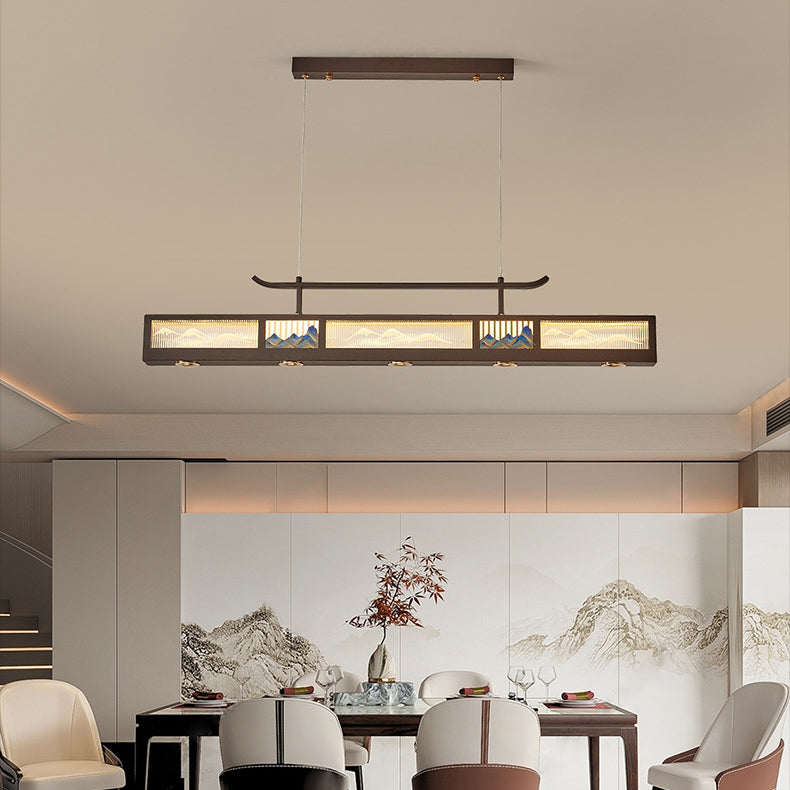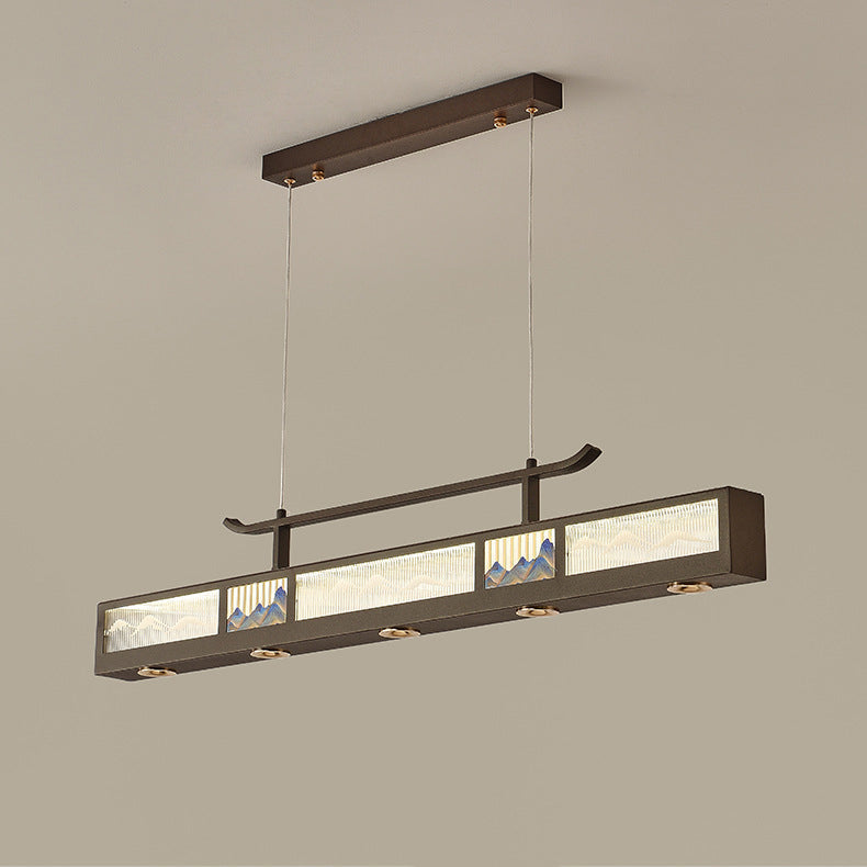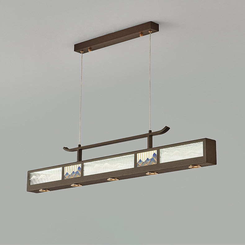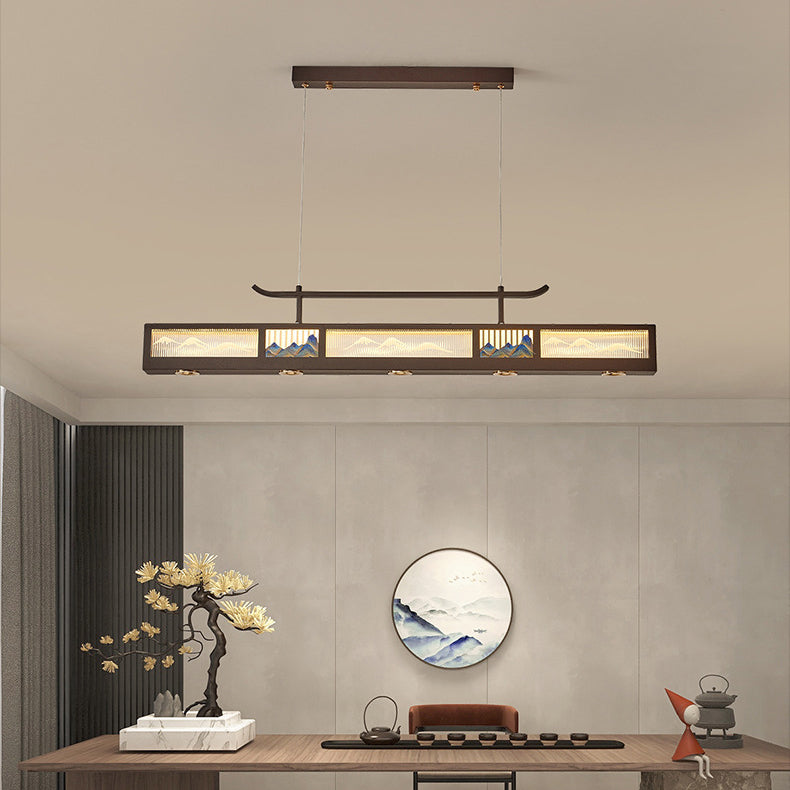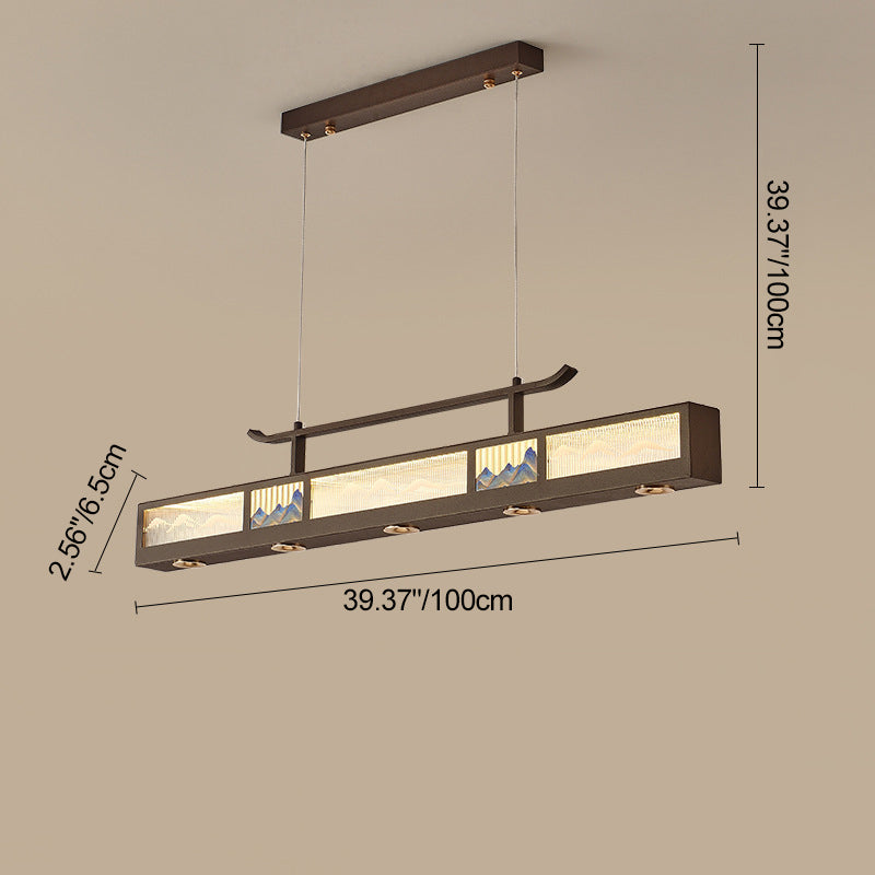 Crafted from iron. acrylic. and stainless steel. this traditional Chinese chandelier features a clean rectangular silhouette with excellent light transmission. Its anti-corrosion. fade-resistant design and warm brown finish make it perfect for adding a serene. modern Zen touch to dining rooms. tea spaces. or living areas.