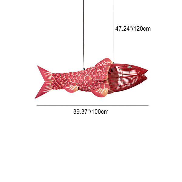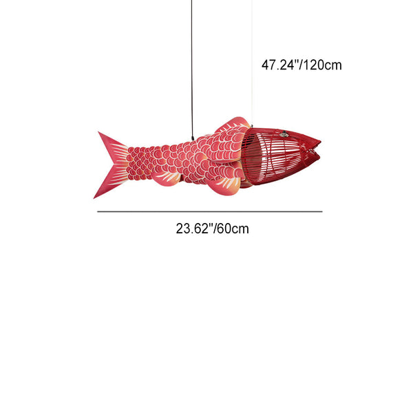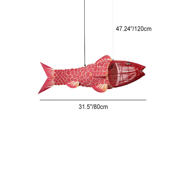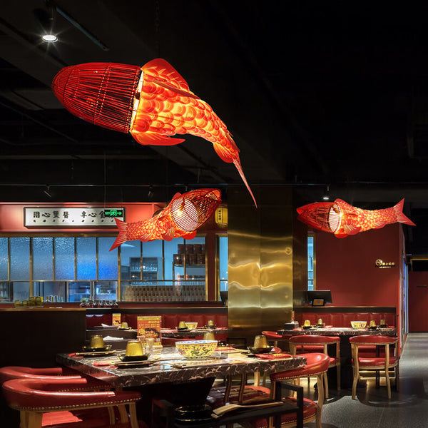 Traditional Chinese Koi Fish Iron PVC Fabric 2/4 Light Chandelier For Dining Room