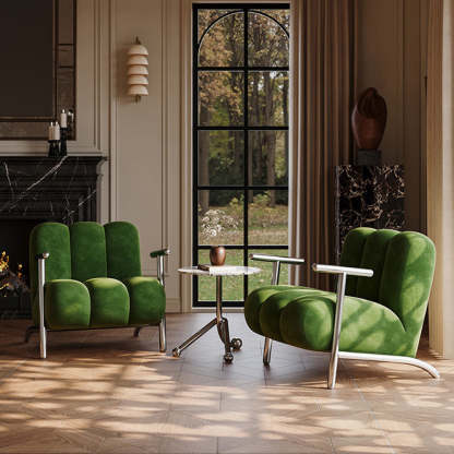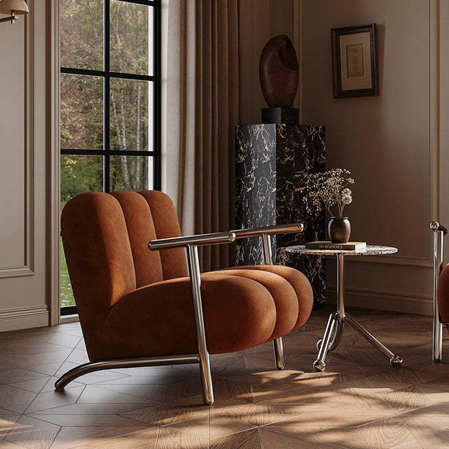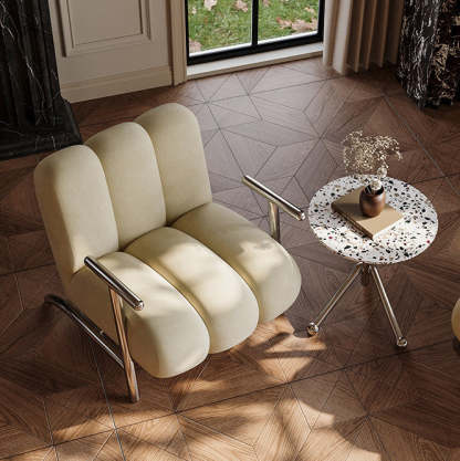 Crafted from lambswool. suede. solid wood. and stainless steel. this traditional Chinese accent chair blends cozy texture with sculptural elegance. The square-wave silhouette. soft-touch materials. and ergonomic armrests offer both comfort and style��perfect for modern living rooms. balconies. or boutique interiors.