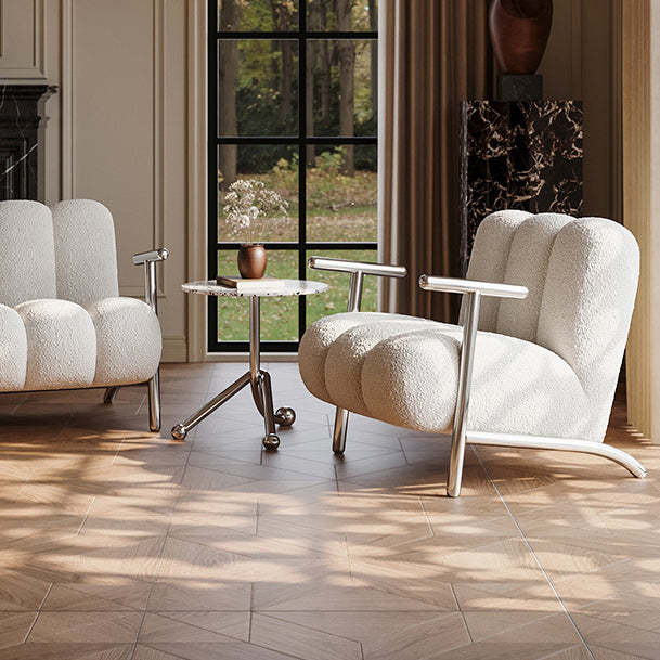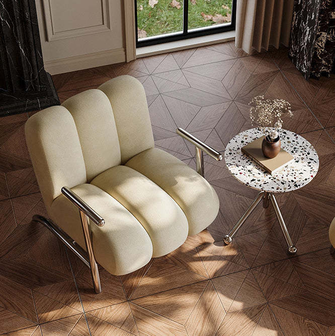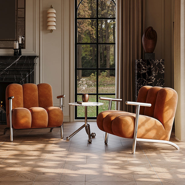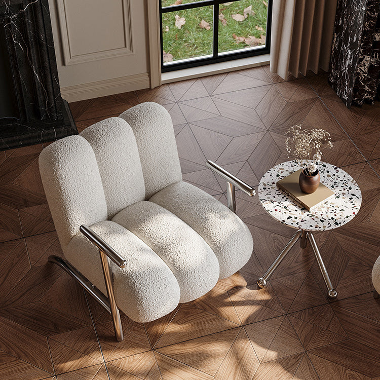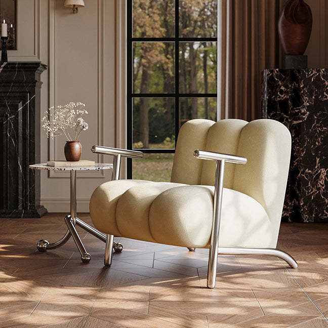 Traditional Chinese Lambswool Suede Wood Stainless Steel Square Wave Accent Chair With Armrest & Backrest For Living Room