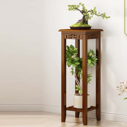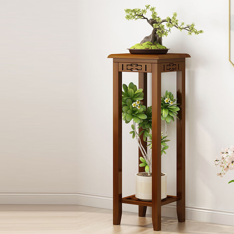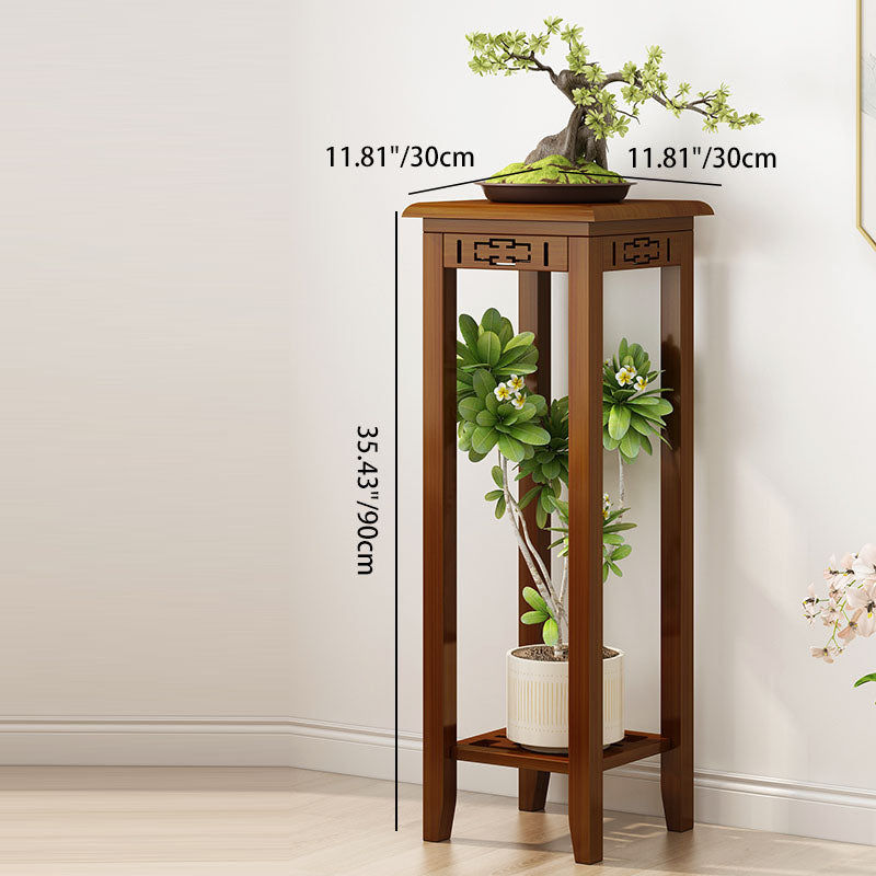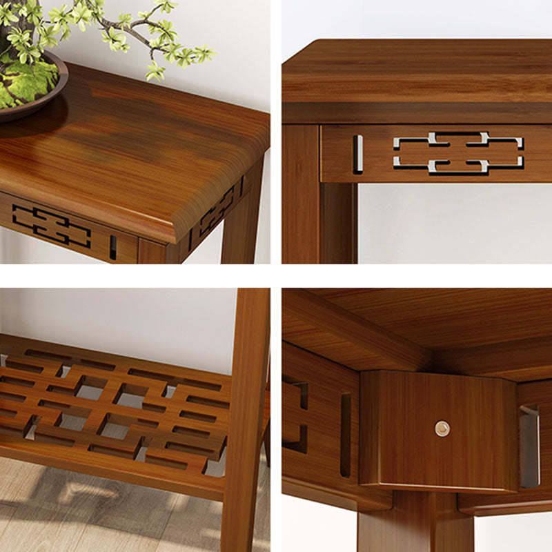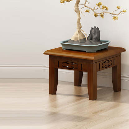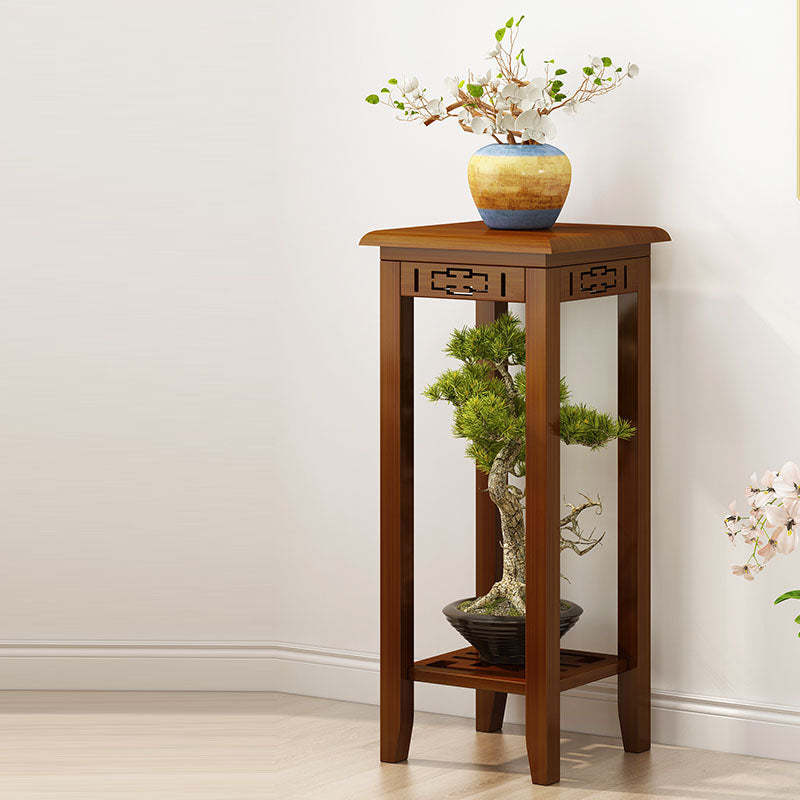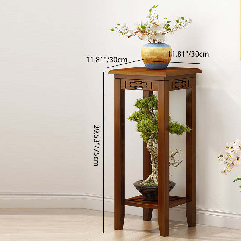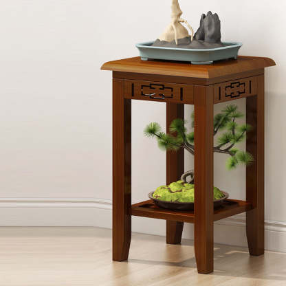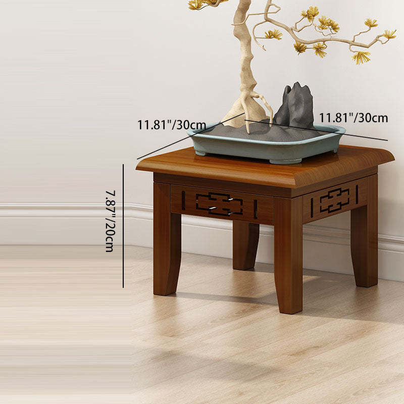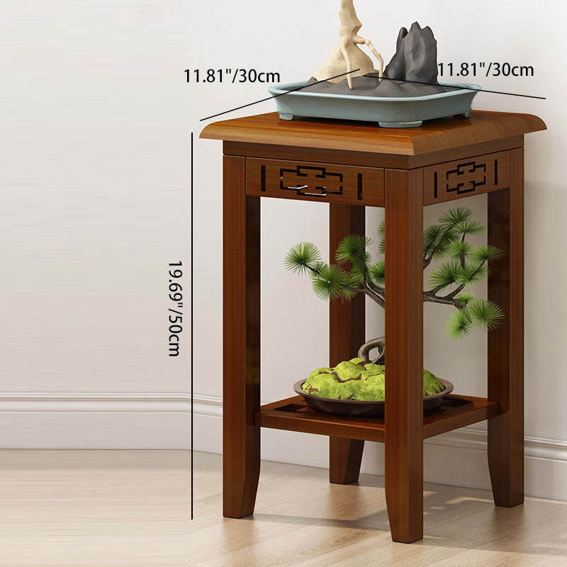 Traditional Chinese Rectangular Carved Solid Wood Side Table 1/2 Tier For Living Room