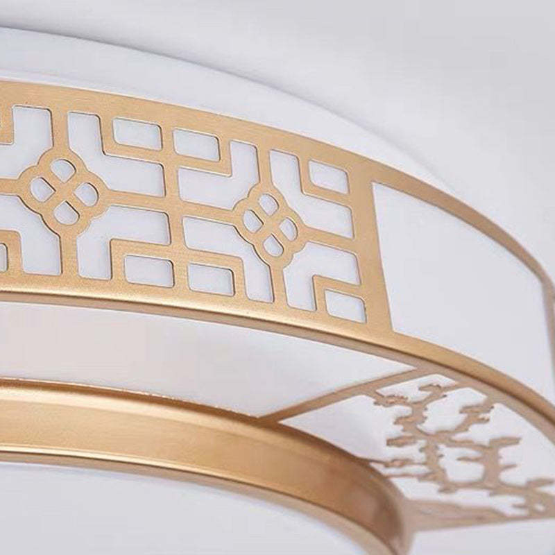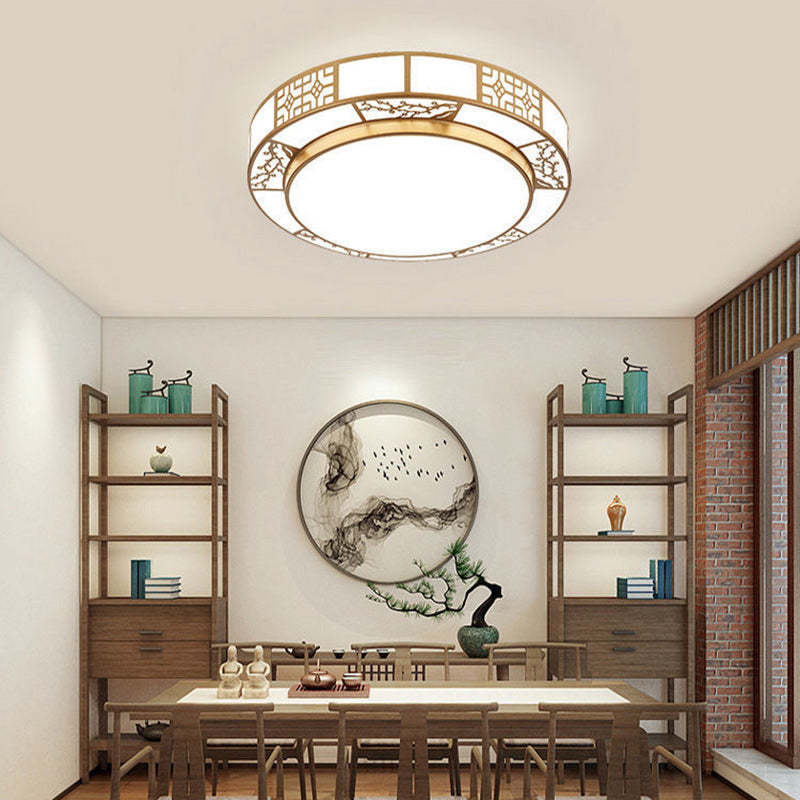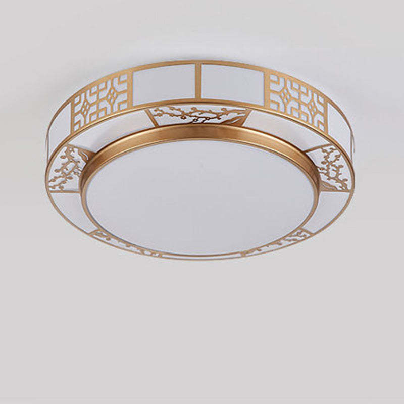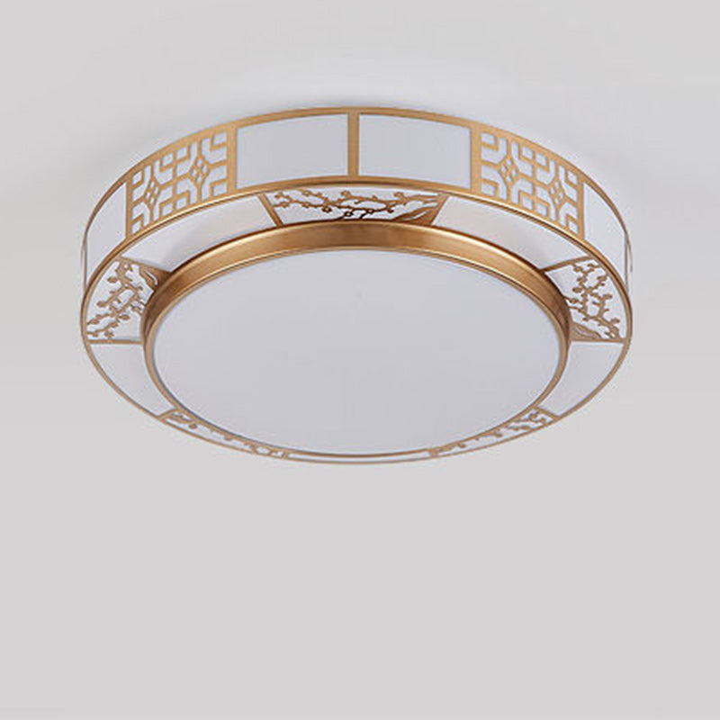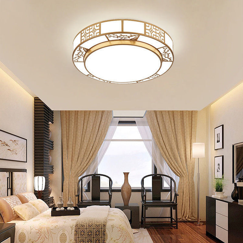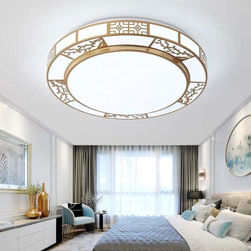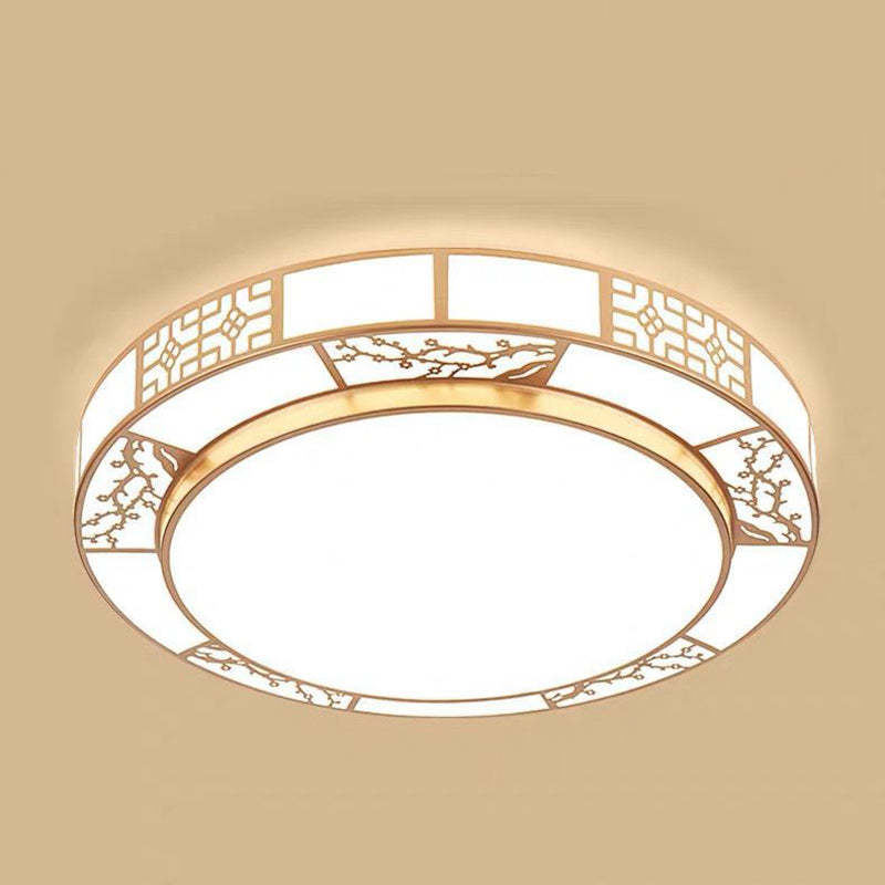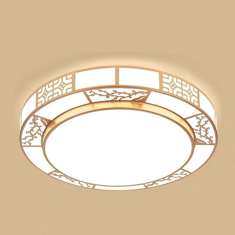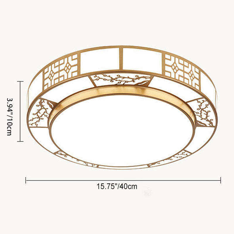 Traditional Chinese Round Plum Blossom Acrylic Aluminum LED Flush Mount Ceiling Light For Living Room