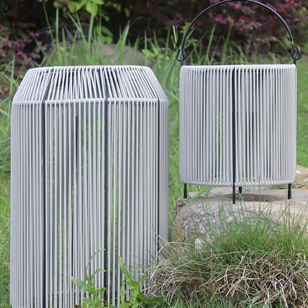 Traditional Chinese Solar Waterproof Cylindrical PE Rattan LED Standing Floor Lamp For Outdoor Patio