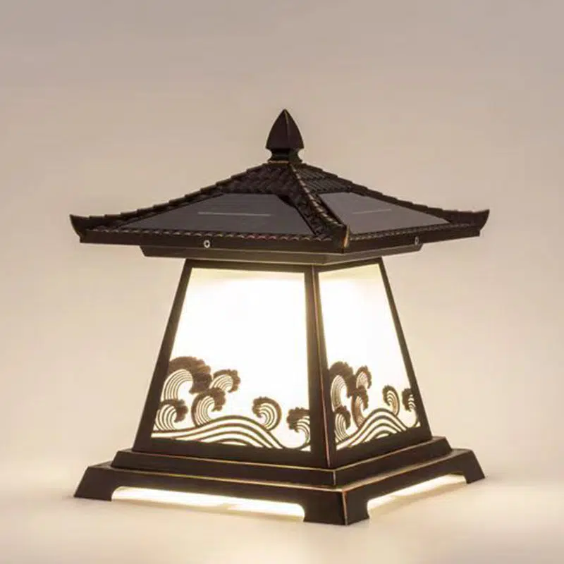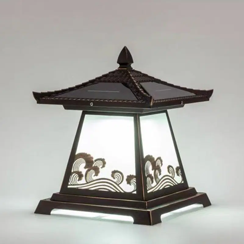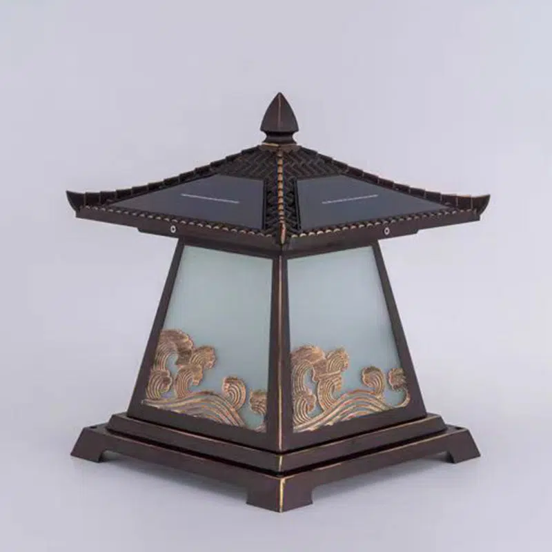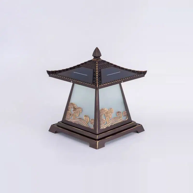 Traditional Chinese Solar Waterproof Glass Aluminum Alloy Palace Wave LED Outdoor Light Landscape Lighting For Garden