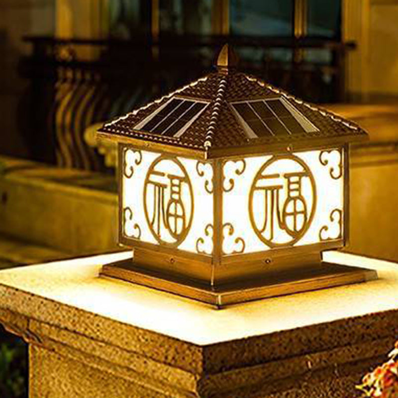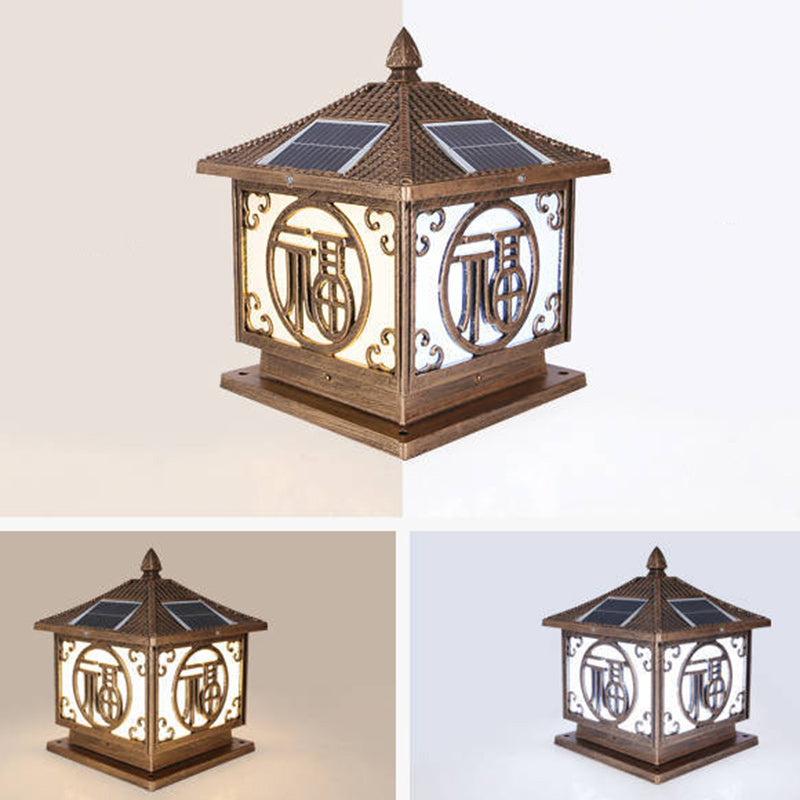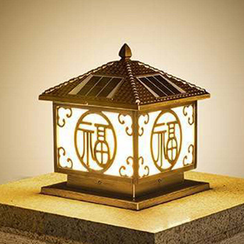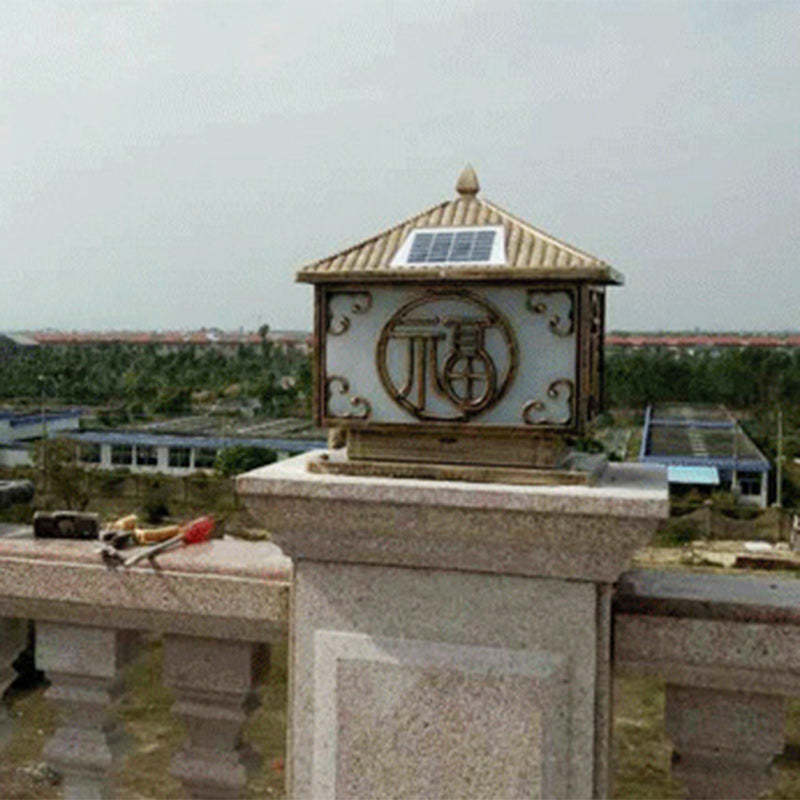Traditional Chinese Solar Waterproof Quadrangle House Shape Aluminum LED Post Head Light Outdoor Light For Garden