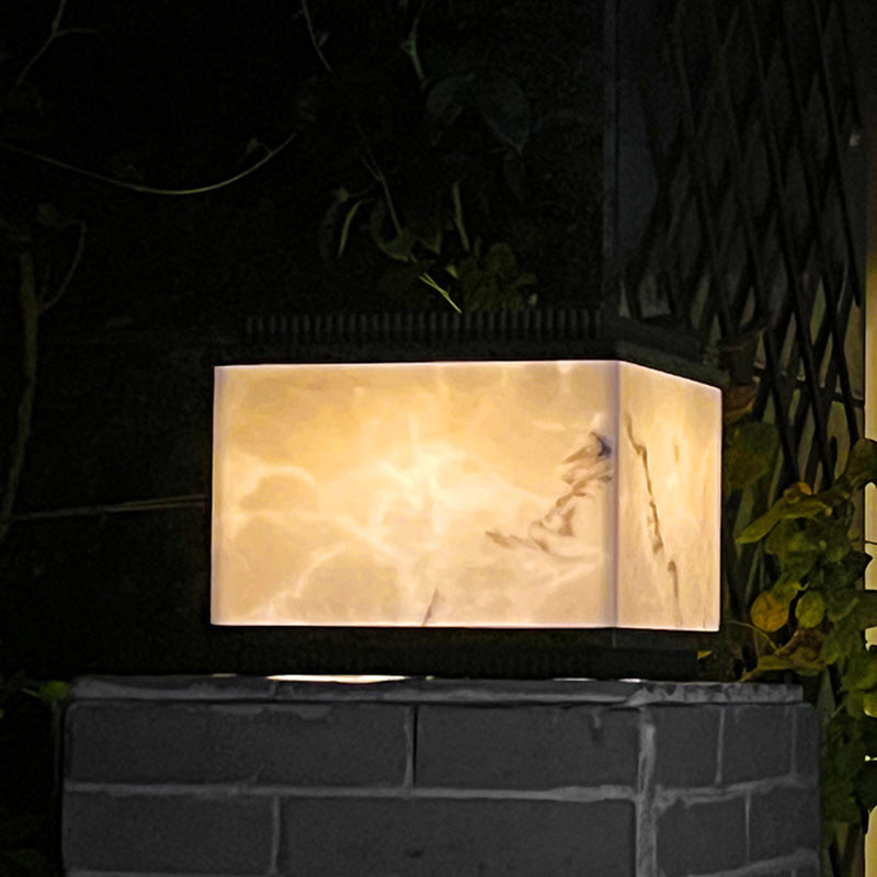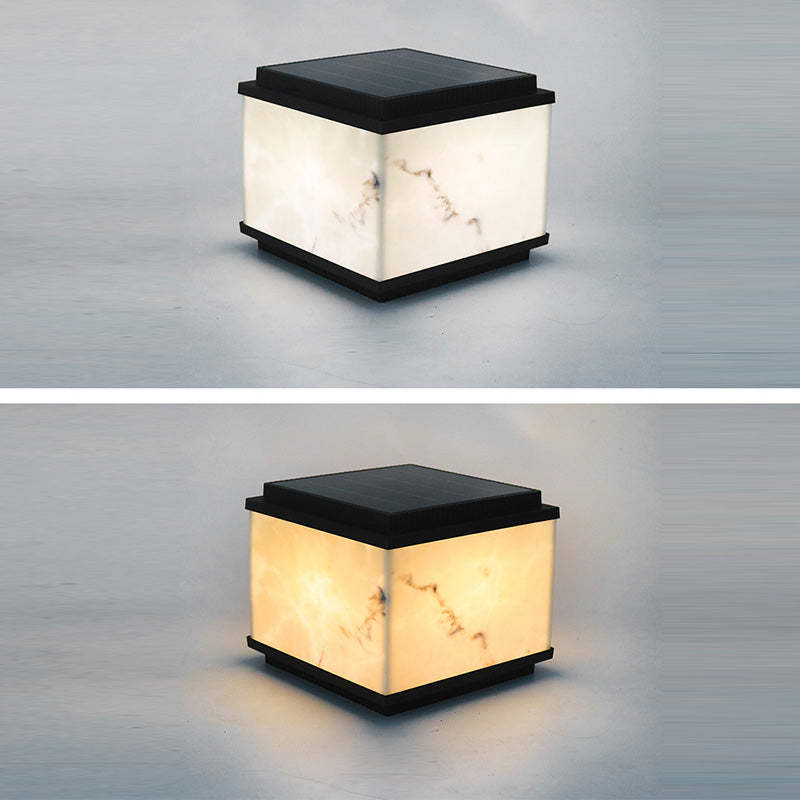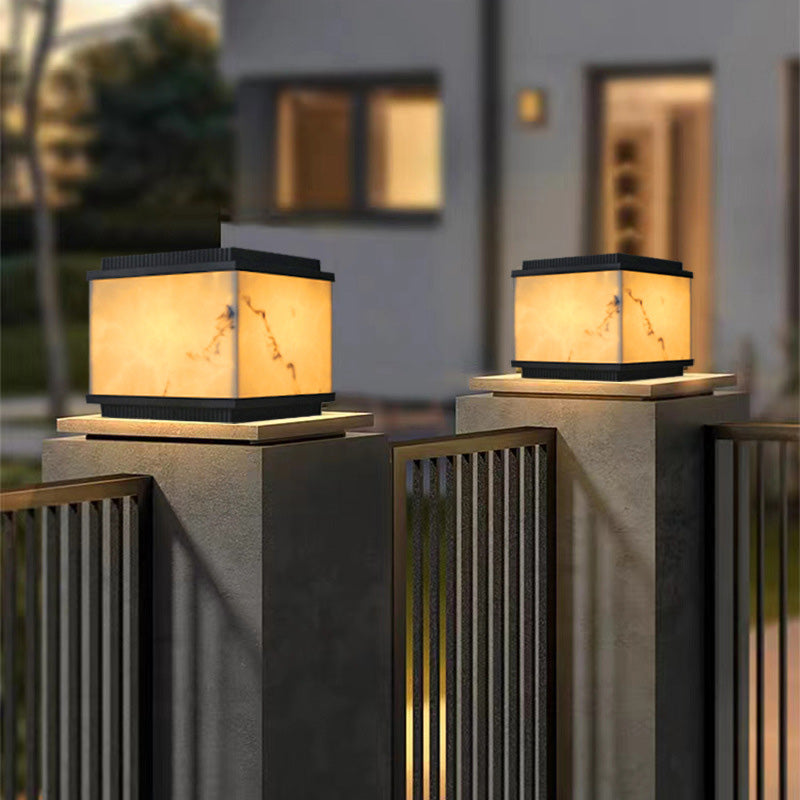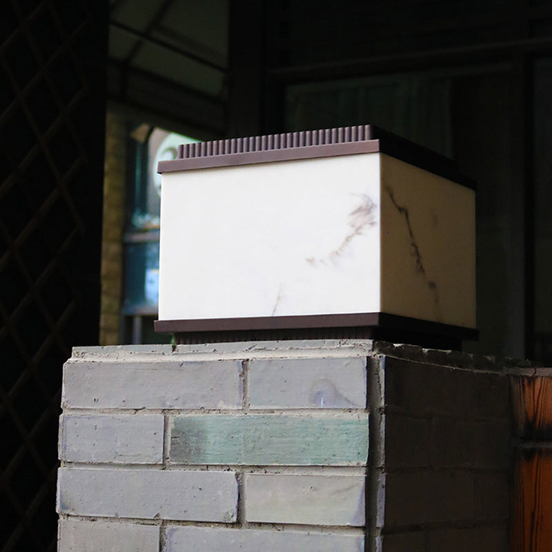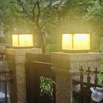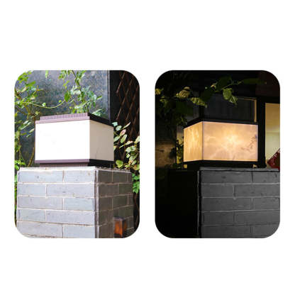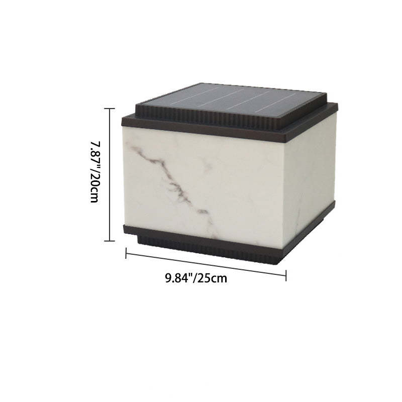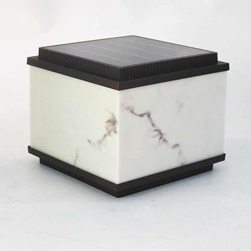 Traditional Chinese Solar Waterproof Rectangular Marble Textured Aluminum Resin LED Post Head Light For Garden