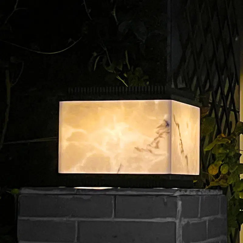 Traditional Chinese Solar Waterproof Rectangular Marble Textured Aluminum Resin LED Post Head Light For Garden