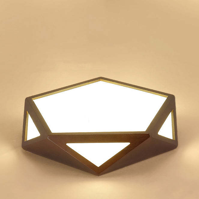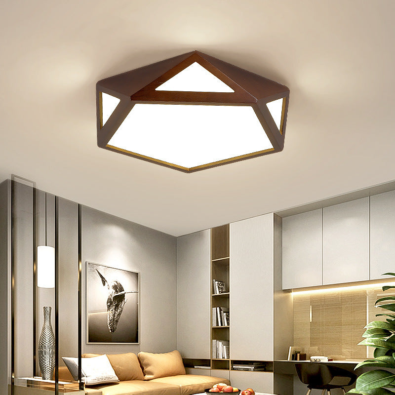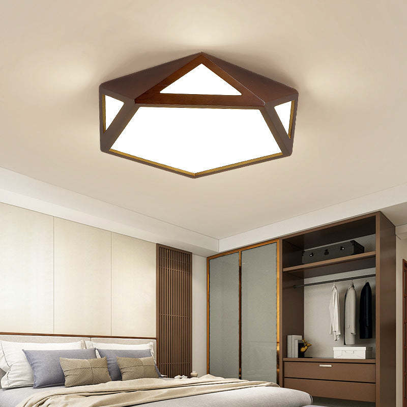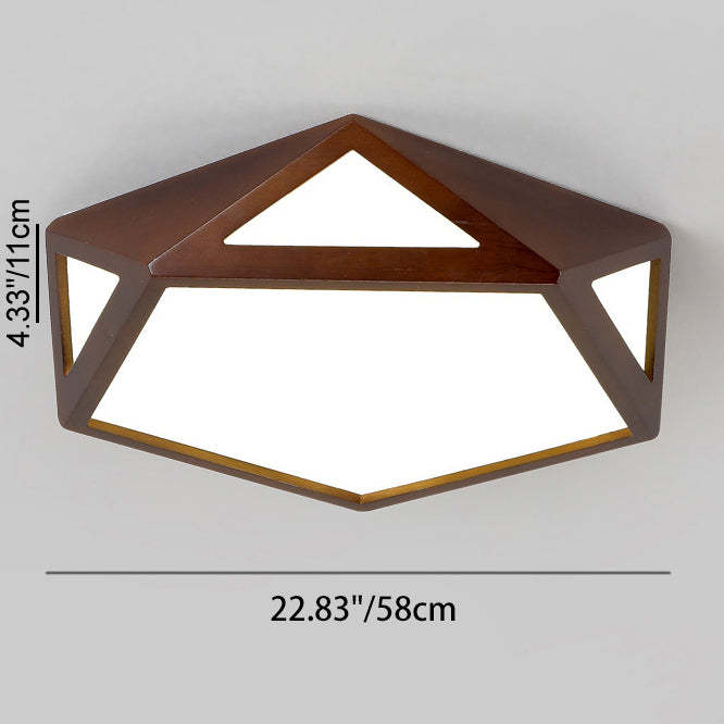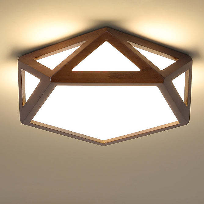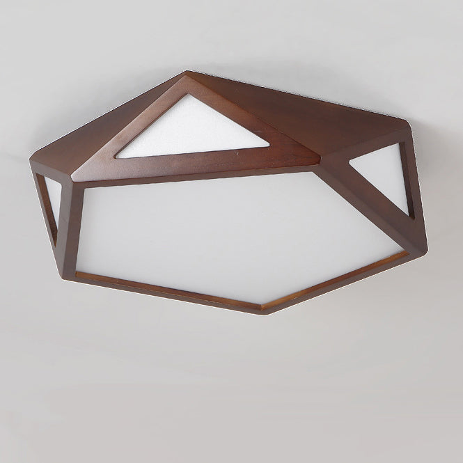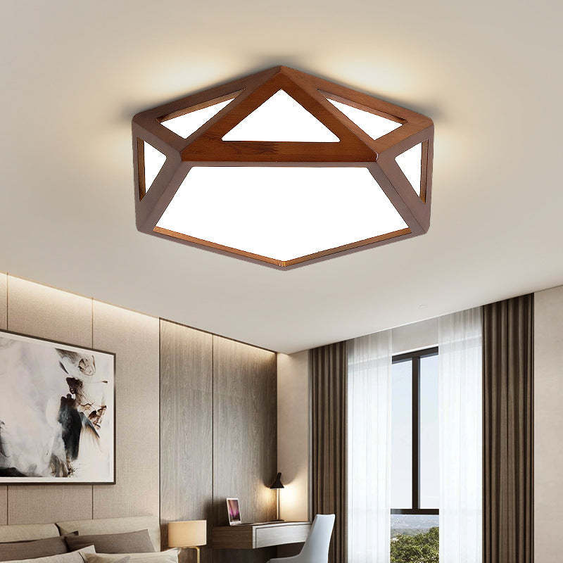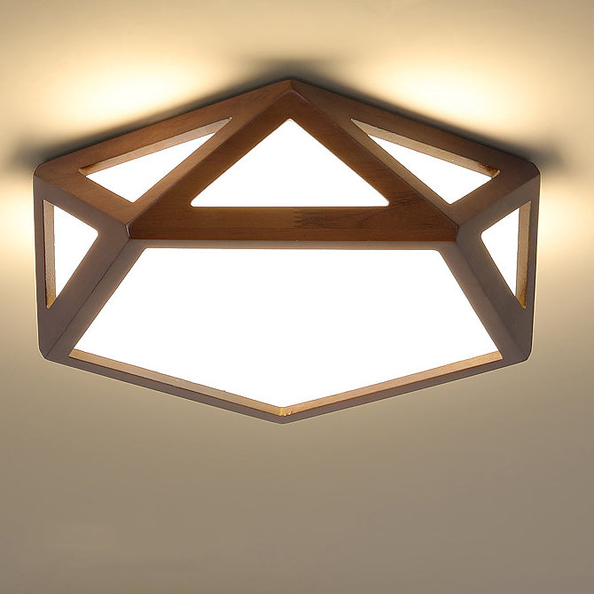 Traditional Chinese Solid Wood & Acrylic Hexagonal LED Flush Mount Ceiling Light For Bedroom