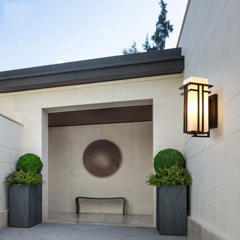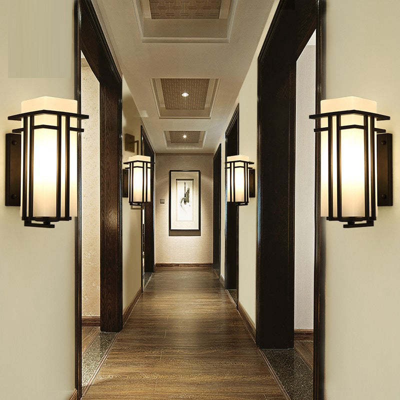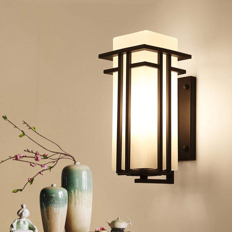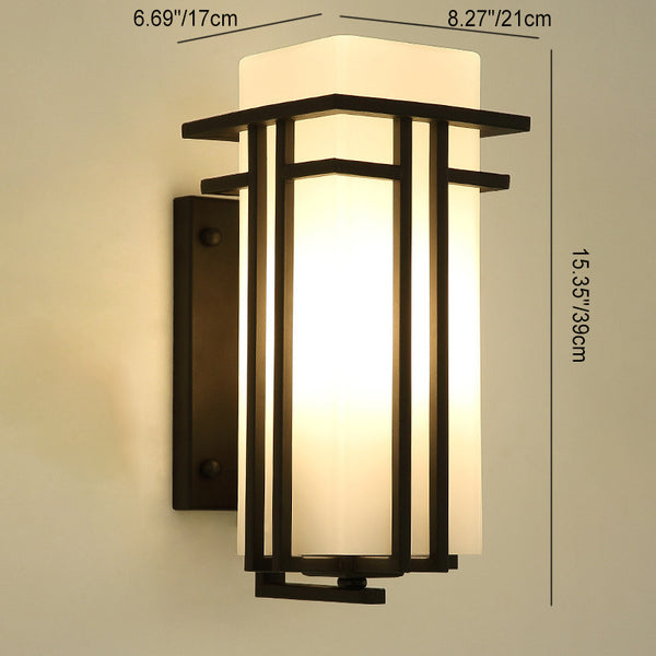 Traditional Chinese Square Iron Glass 1-Light Outdoor Wall Sconce Lamp For Garden