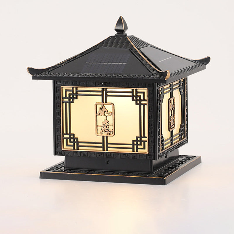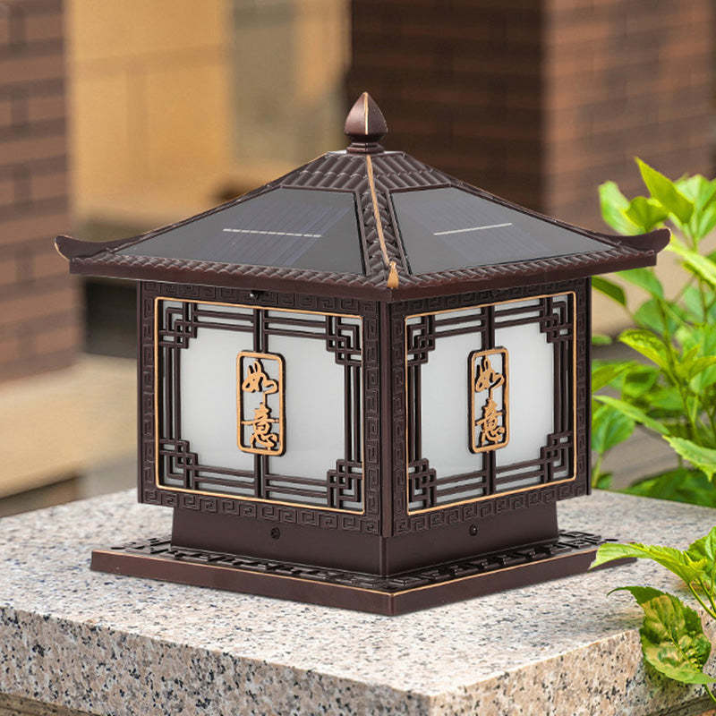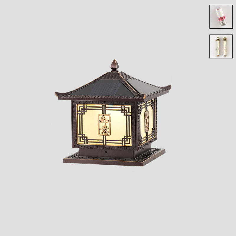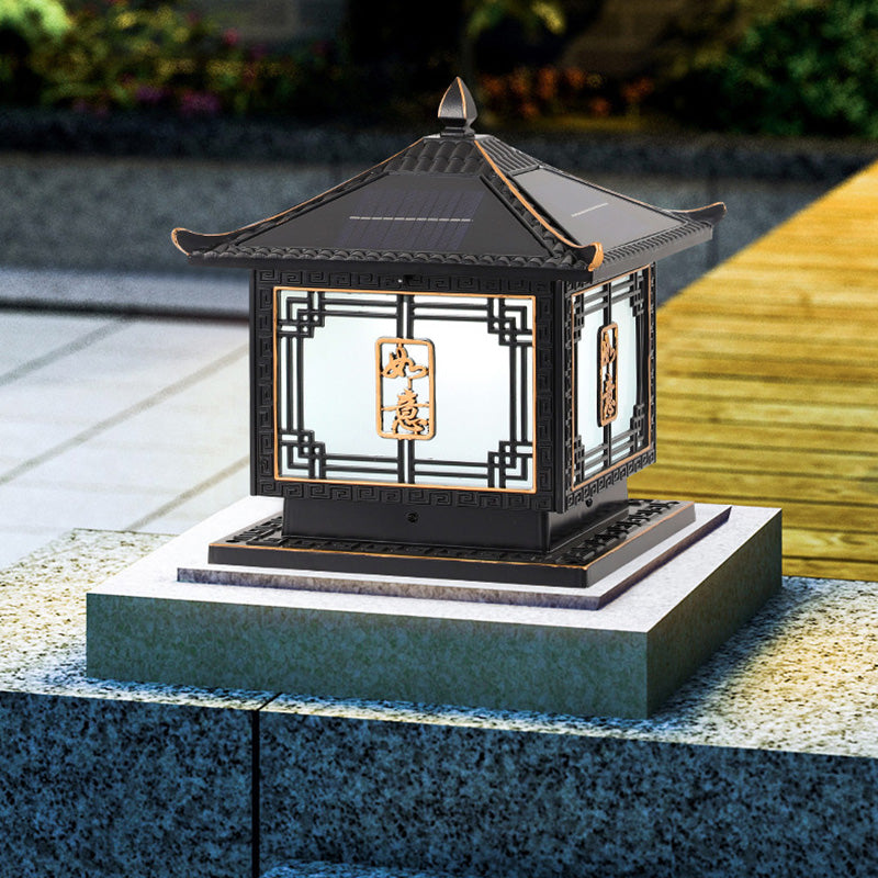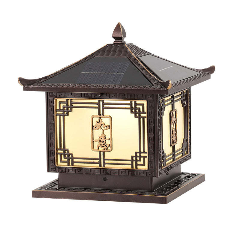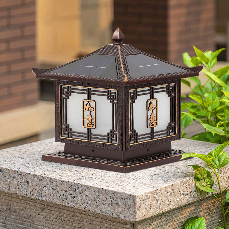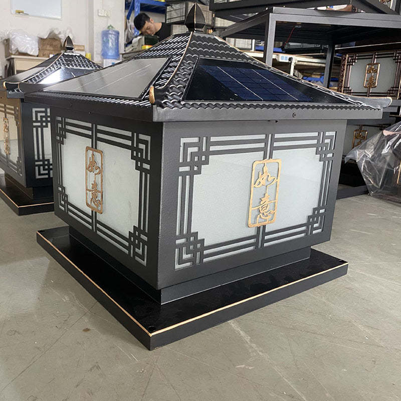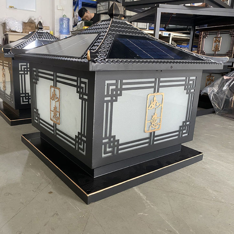 Traditional Chinese Square Patio Ruyi Solar Waterproof Glass Aluminum LED Outdoor Light For Garden