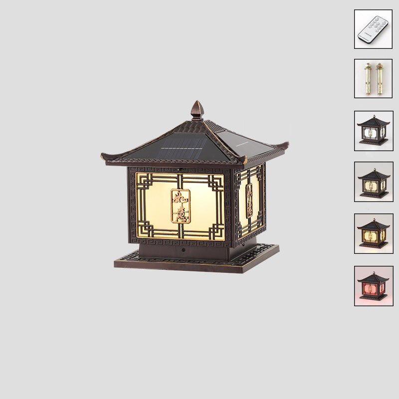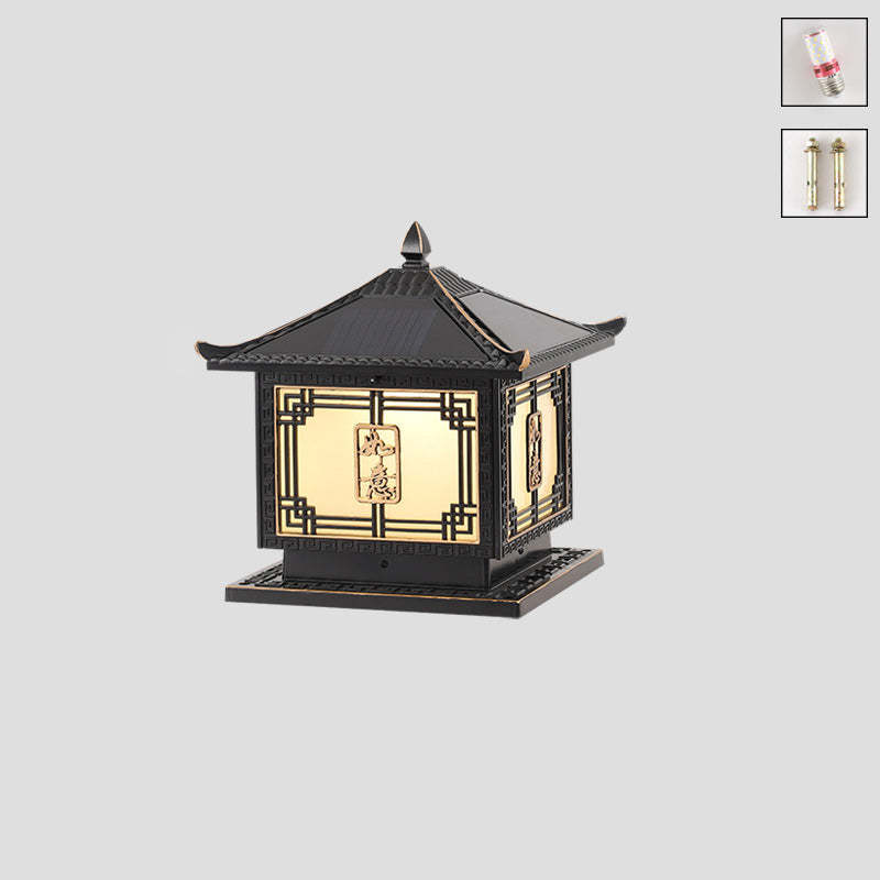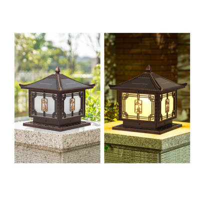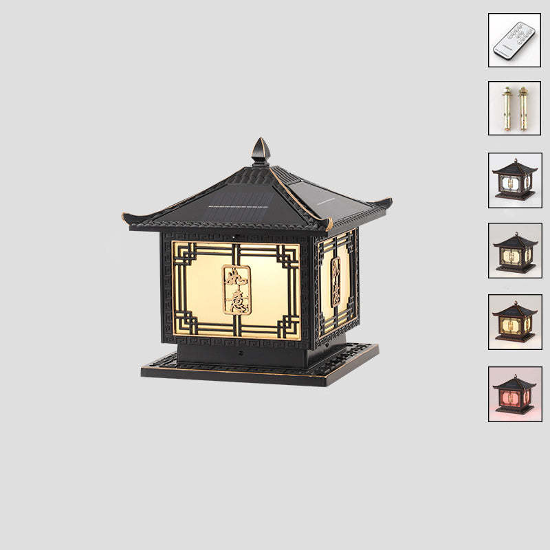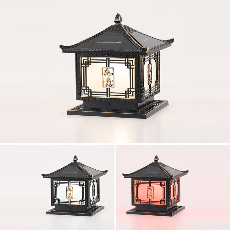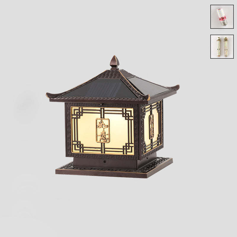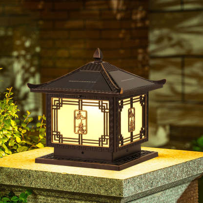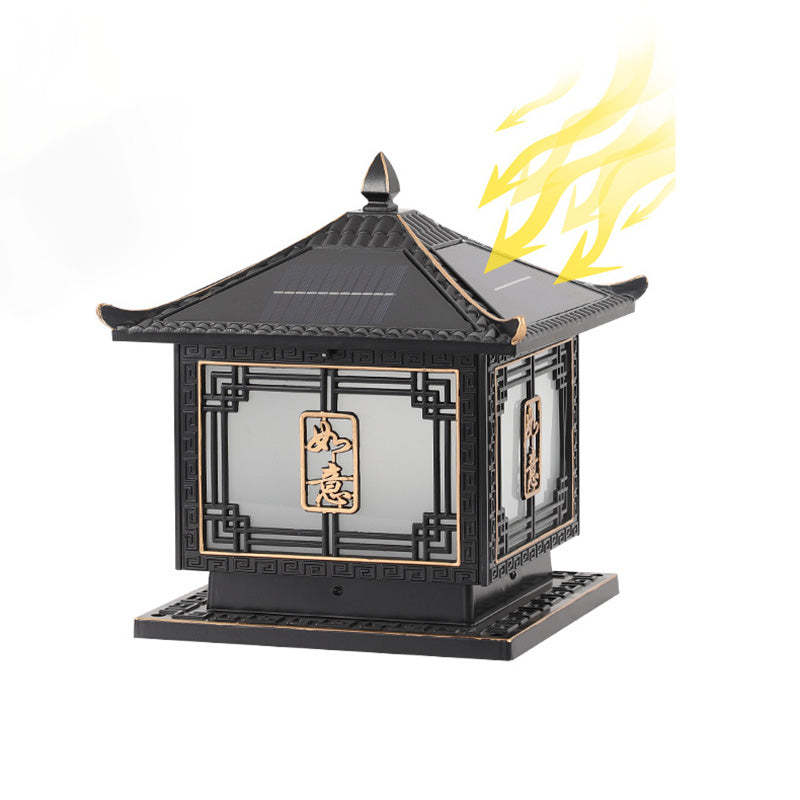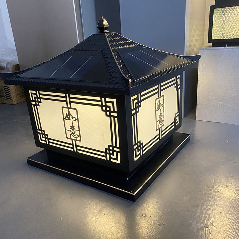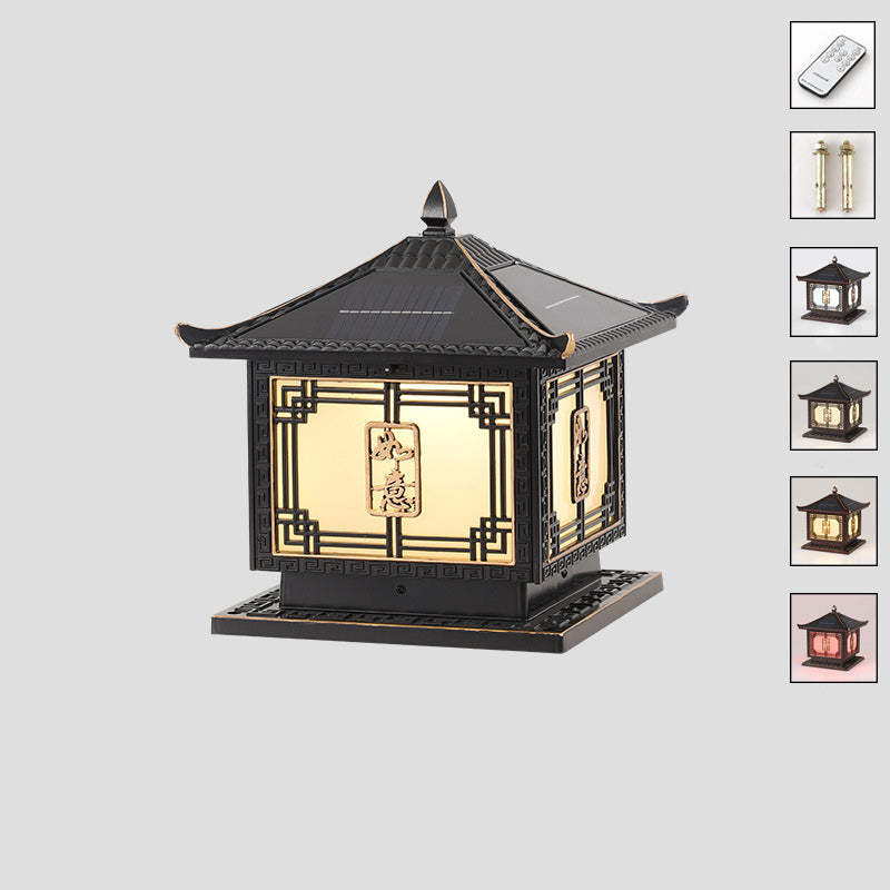 Traditional Chinese Square Patio Ruyi Solar Waterproof Glass Aluminum LED Outdoor Light For Garden