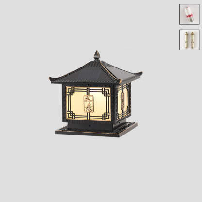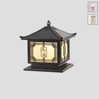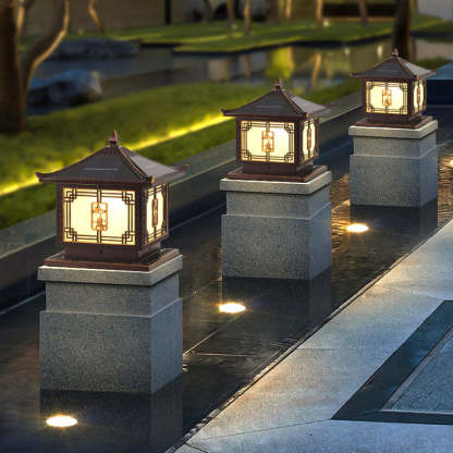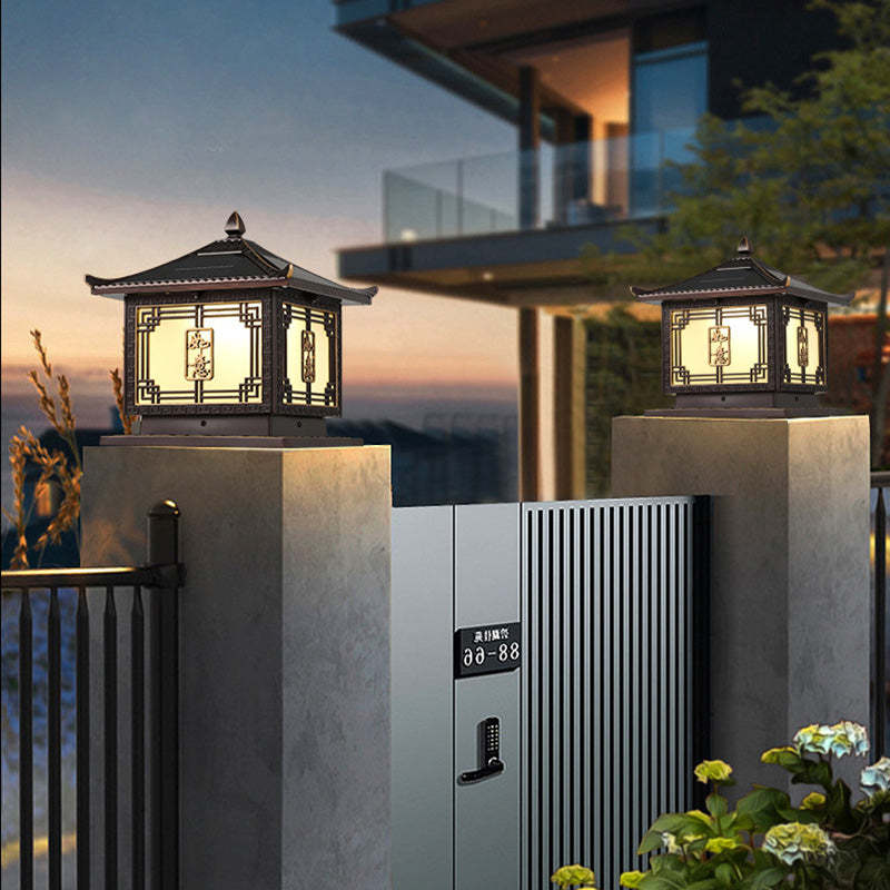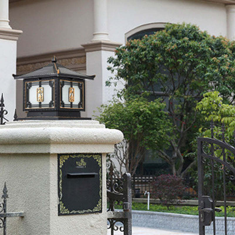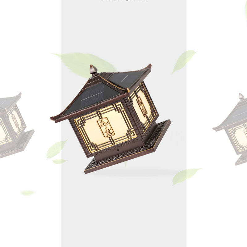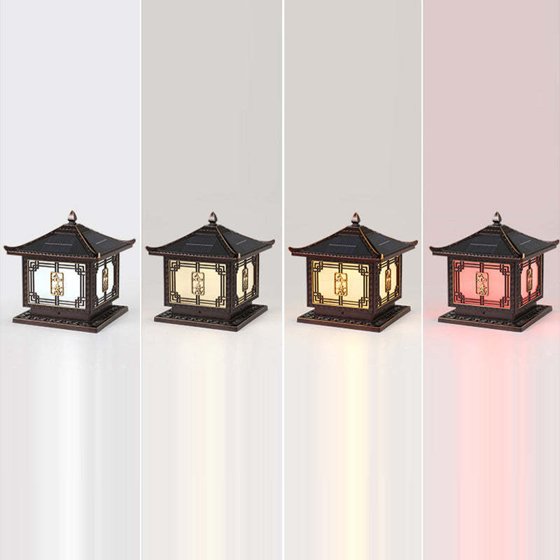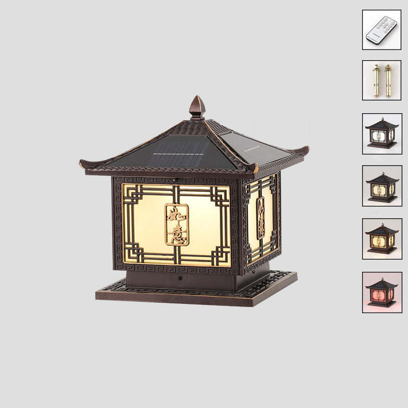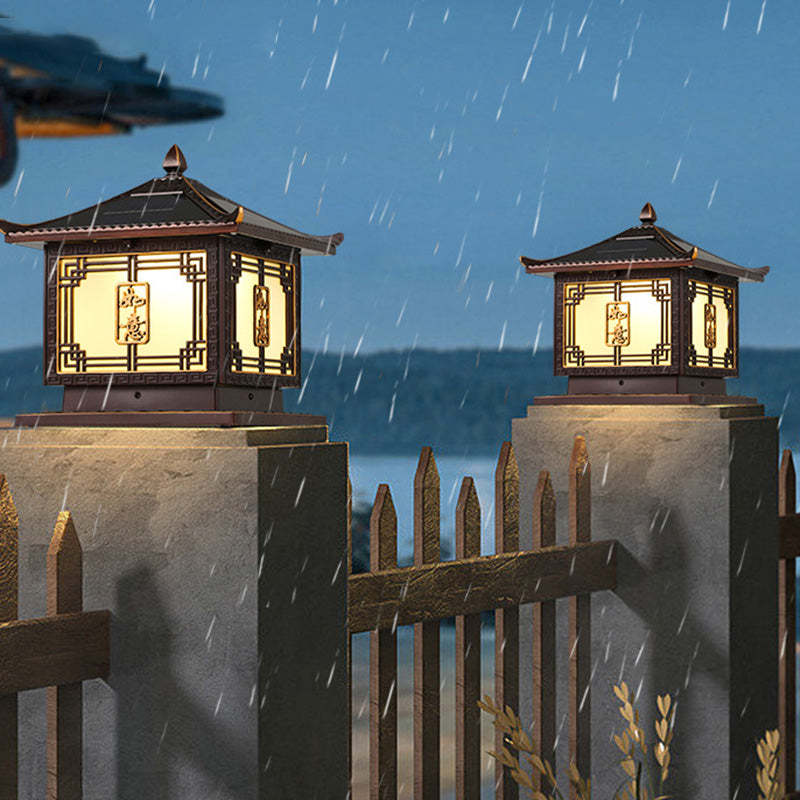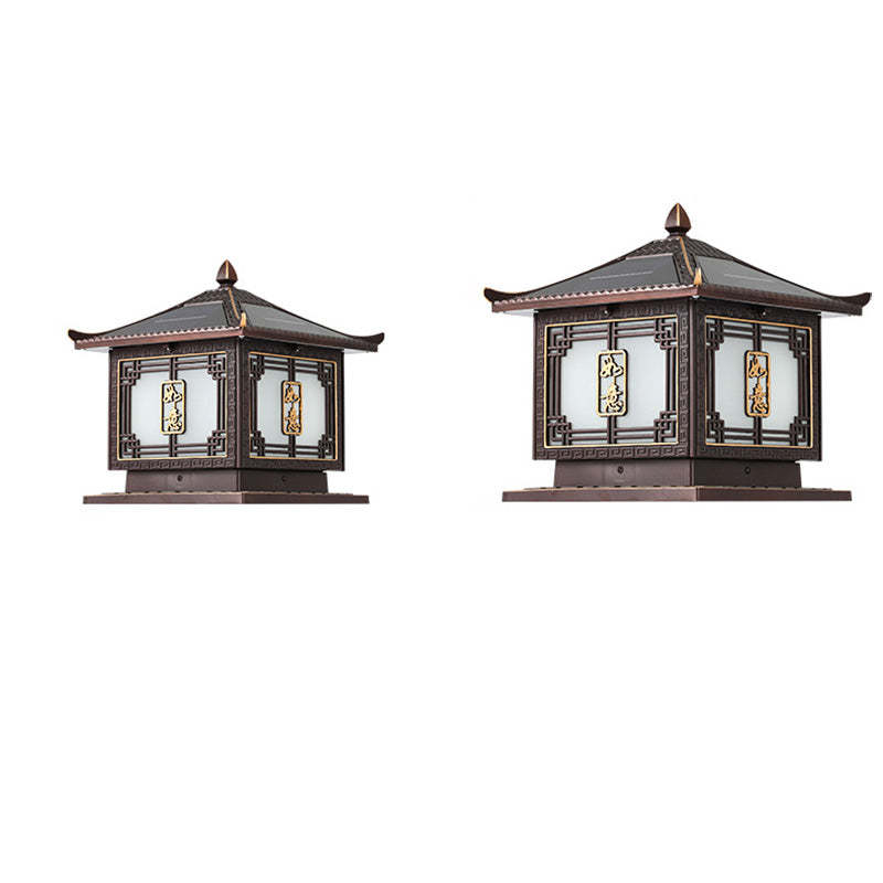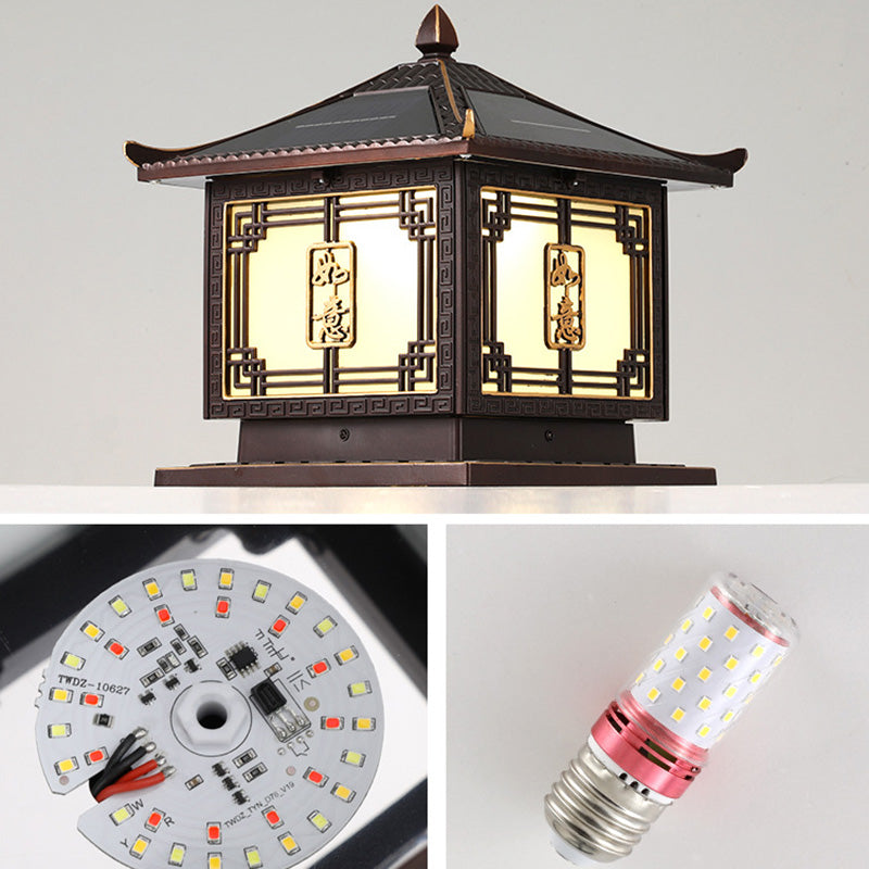 Traditional Chinese Square Patio Ruyi Solar Waterproof Glass Aluminum LED Outdoor Light For Garden