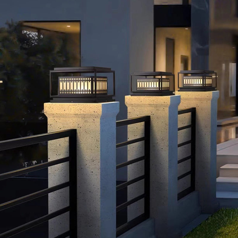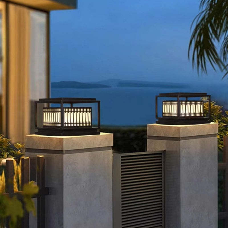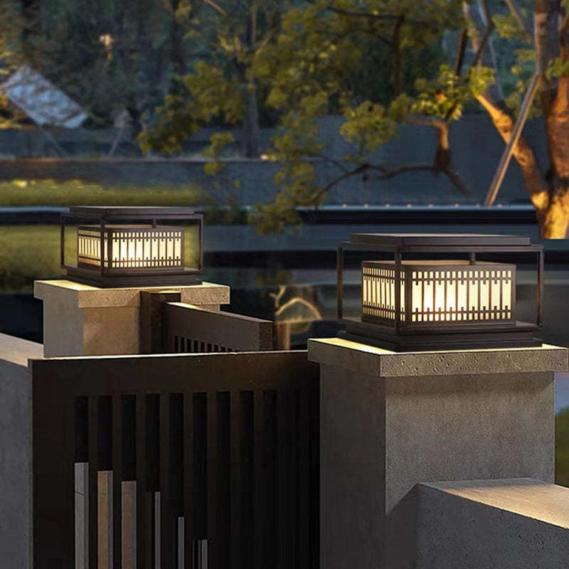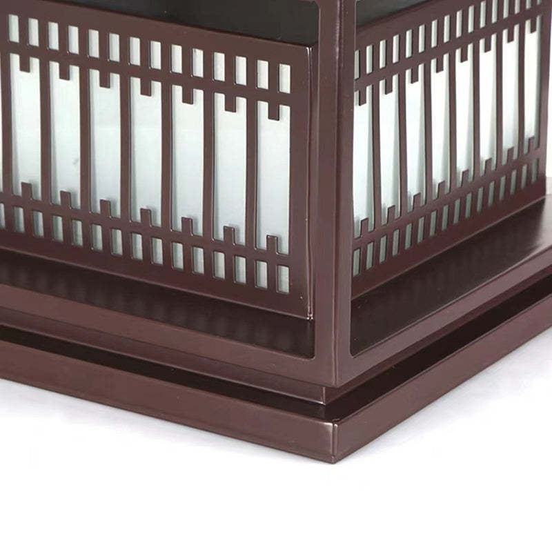 Traditional Chinese Square Stainless Steel Glass 1-Light Post Head Light For Garden