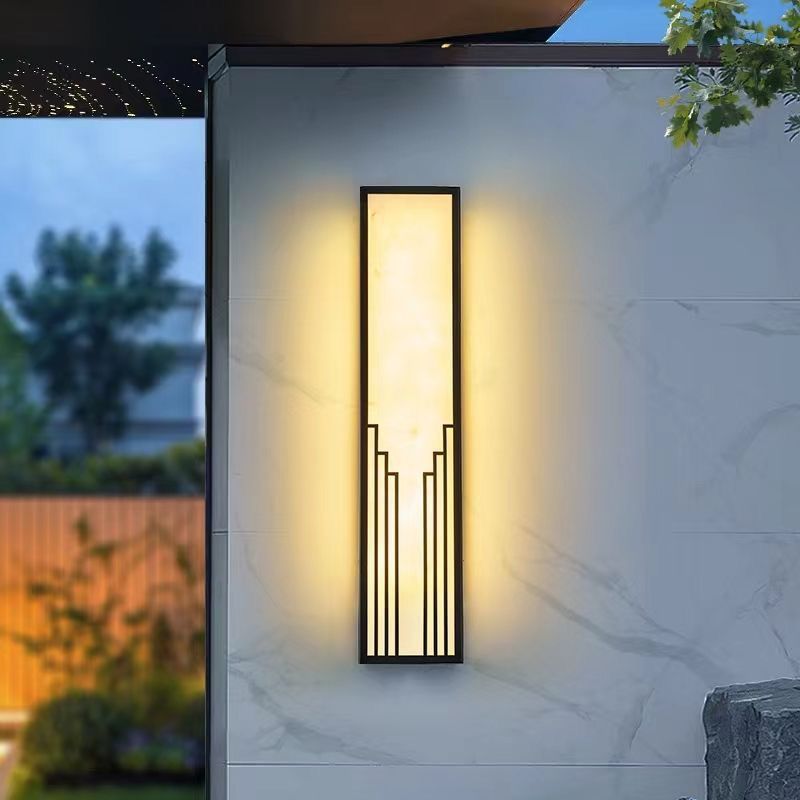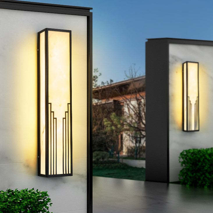 Traditional Chinese Stainless Steel Rectangular Imitation Marble Shade LED Outdoor Wall Sconce Lamp For Garden