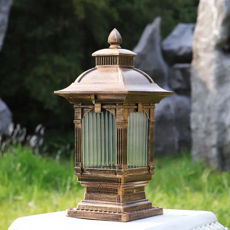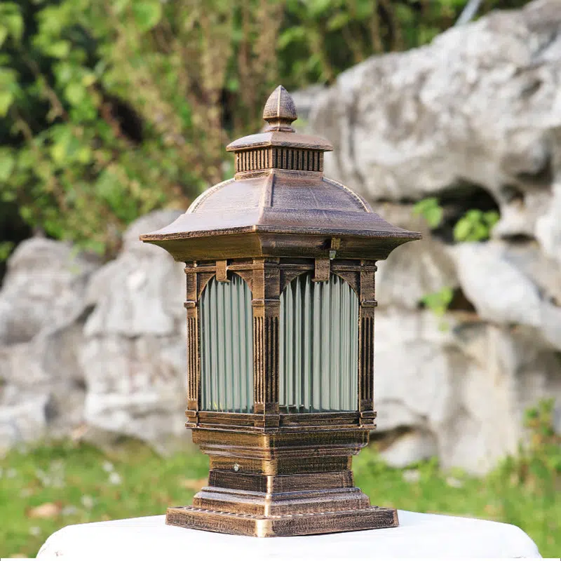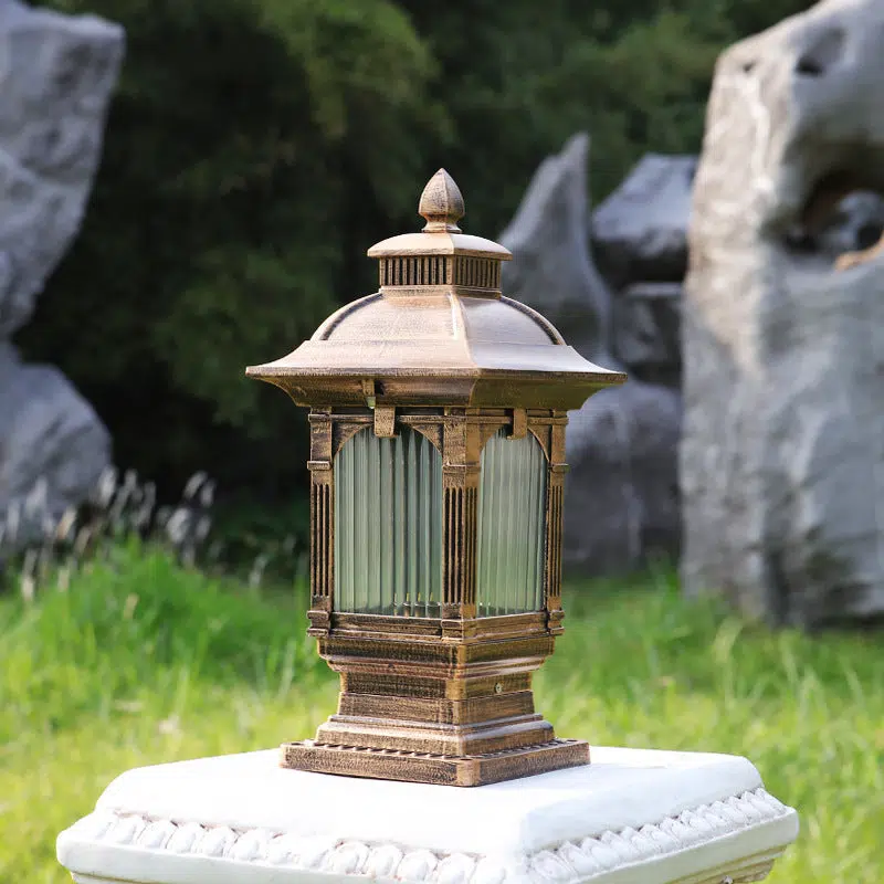 Enhance your garden or villa entrance with this traditional European-style post head light. crafted from thickened aluminum and striped glass in a classic antique bronze finish. Designed for outdoor durability. it features waterproof protection and timeless elegance perfect for gates. fences. and courtyard posts.