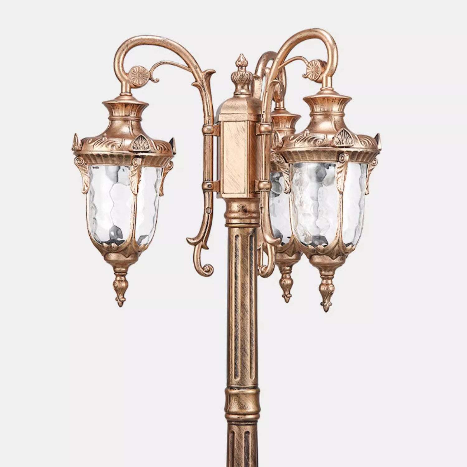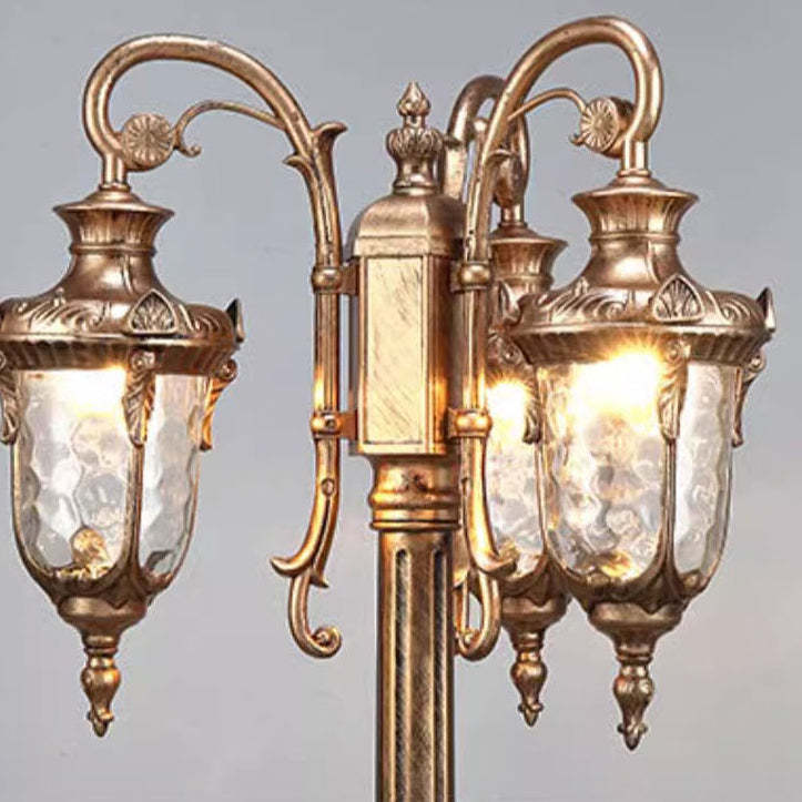 Traditional European Aluminum Water Glass Post Lamp 3-Light Outdoor Light For Garden