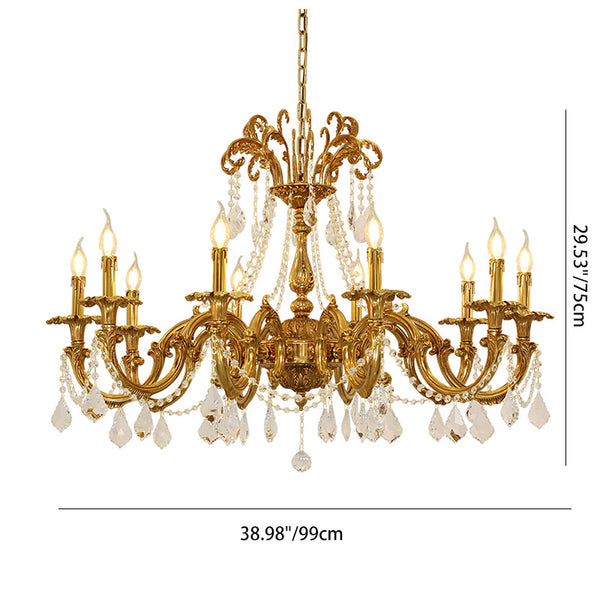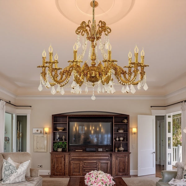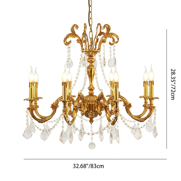 Traditional European Brass Crystal Candle-shaped 6/8/10 Light Chandelier For Living Room & Bedroom