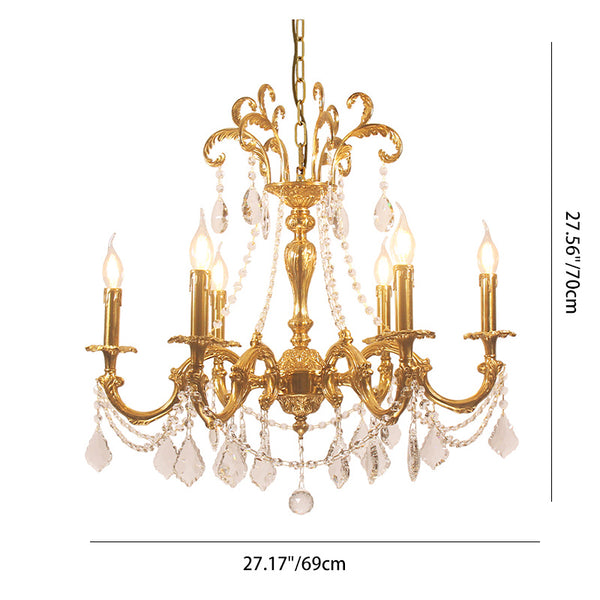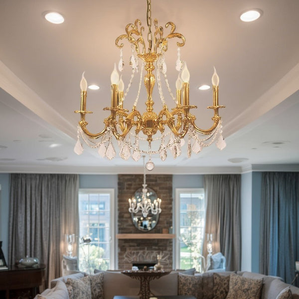 Enhance your living space with this luxurious European-style chandelier. Made from high-quality brass and crystal. this stunning light fixture features a candle-shaped. branch design that adds elegance and charm to any room. Available in 6. 8. or 10 lights. perfect for your bedroom or living room.