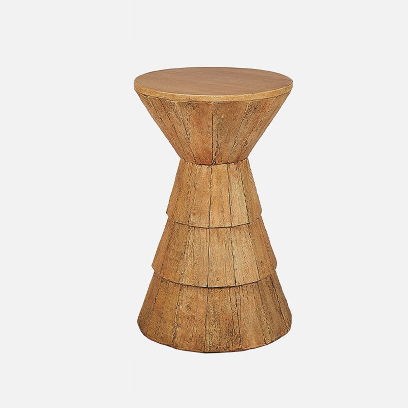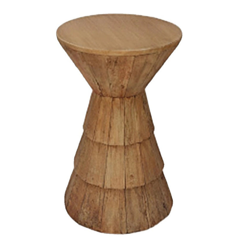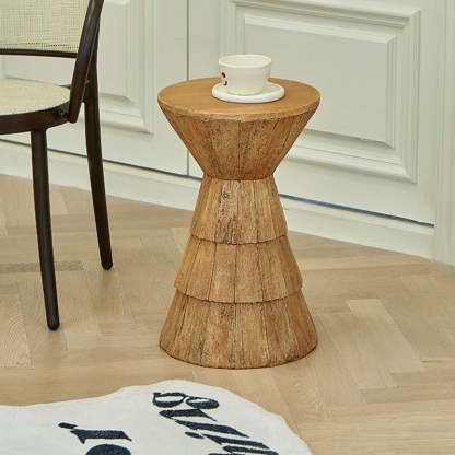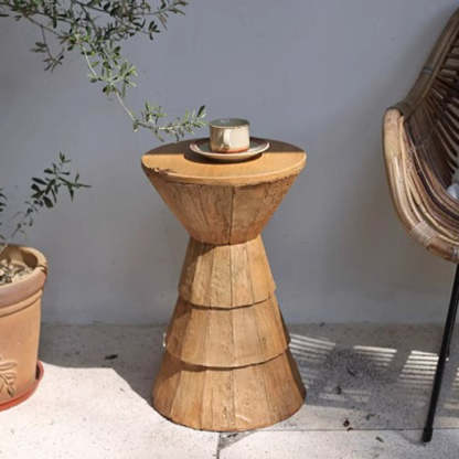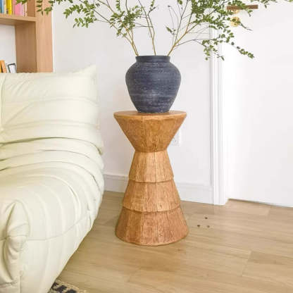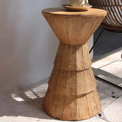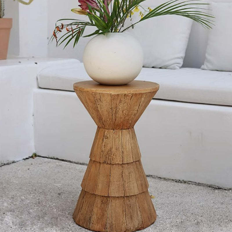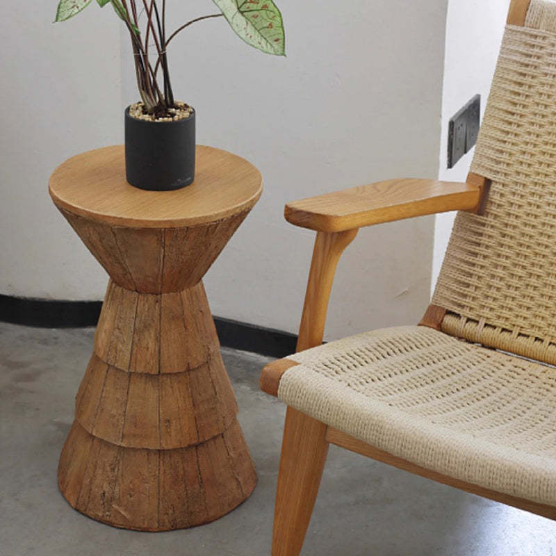Crafted from lightweight and eco-friendly magnesium oxide. this round stump side table features layered wood-grain textures in a natural wood tone. offering a rustic charm with a modern sculptural feel. Its durable. weathered finish and organic design make it a perfect accent for living rooms. bedrooms. or balconies. with unique production marks adding character to every piece.