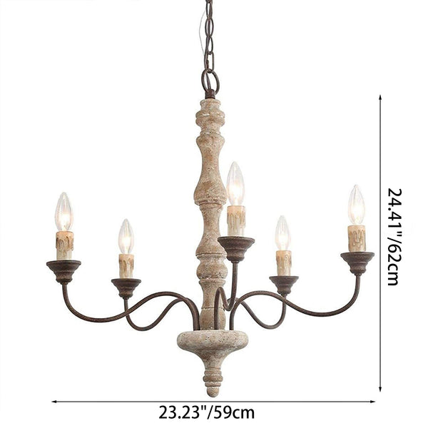 This traditional farmhouse chandelier features 5 soft-glow lights with curved branches and a round silhouette. crafted from solid wood. iron. and glass in a stylish mud gray finish. Ideal for living rooms and dining areas. it brings rustic elegance and a cozy atmosphere to any space.