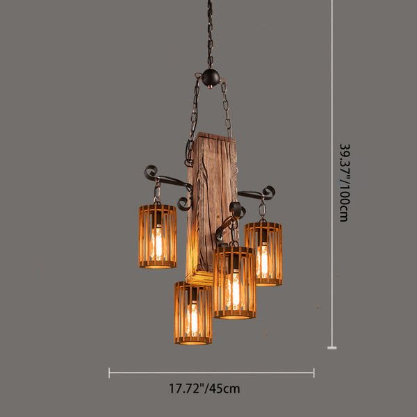Bring rustic charm to your dining space with this industrial-style chandelier featuring a wood and iron frame in a column and sailboat design. Available in 1. 3. or 4 lights. it offers an adjustable hanging cord. handcrafted aged wood detailing. and a warm wood-black finish??perfect for restaurants. bars. and boutique interiors.