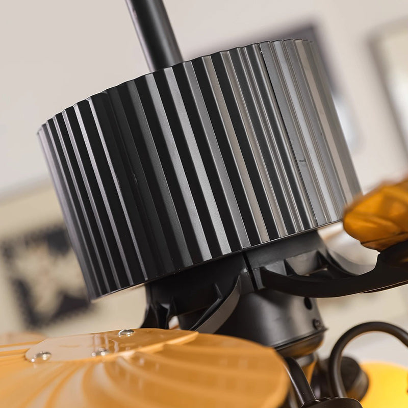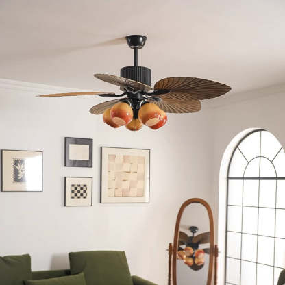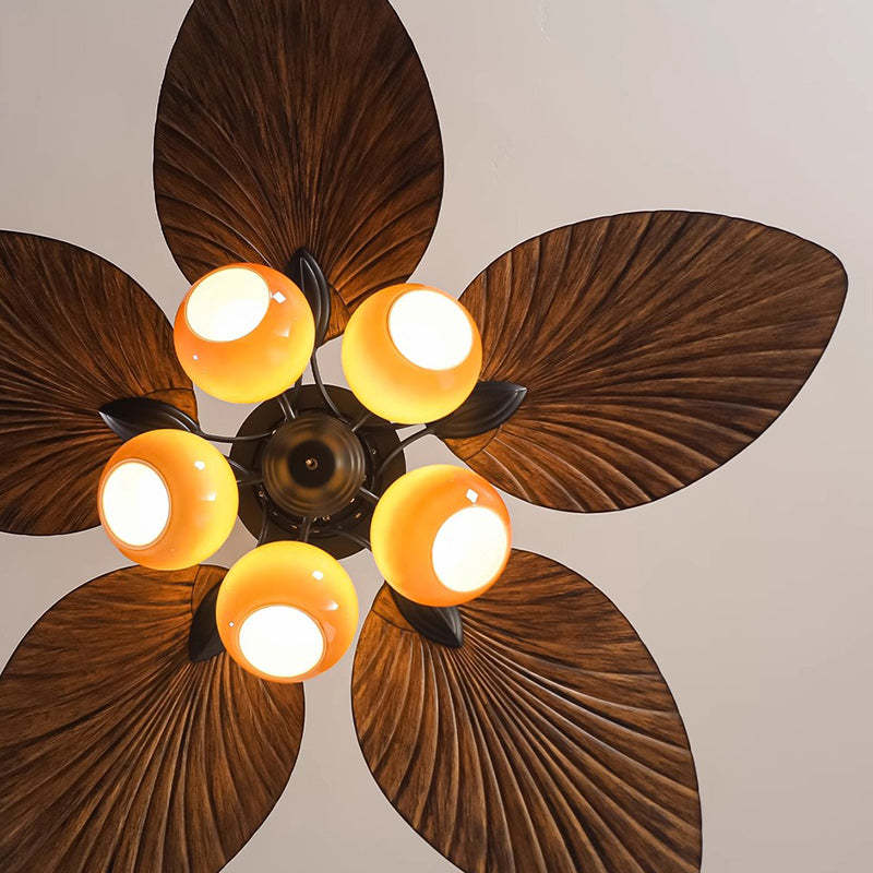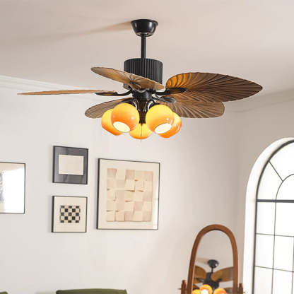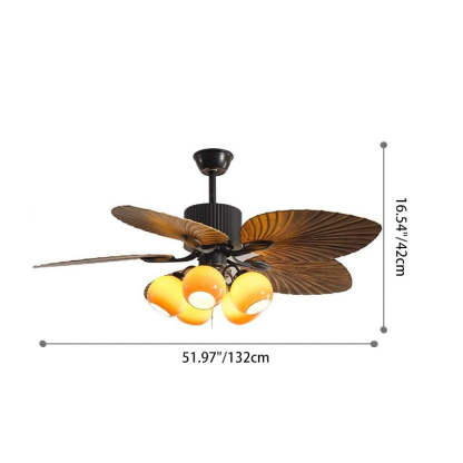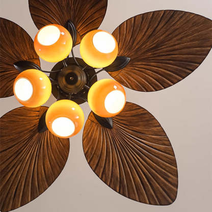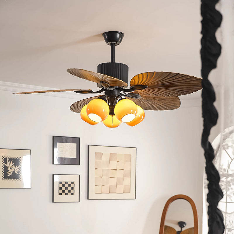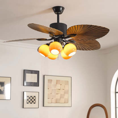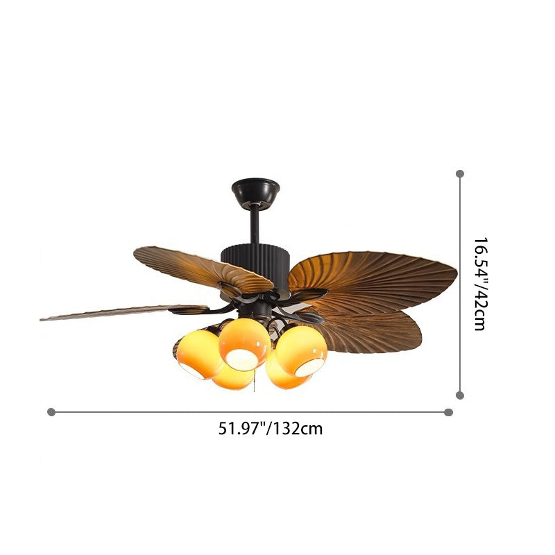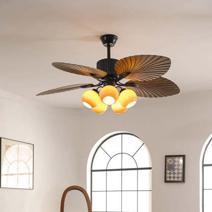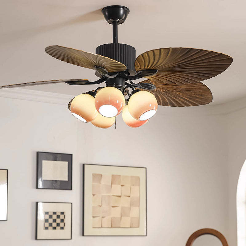 Traditional French Banana Leaves ABS Fan Round Glass Lampshade Iron 5 - Light Downrods Ceiling Fan Light For Living Room