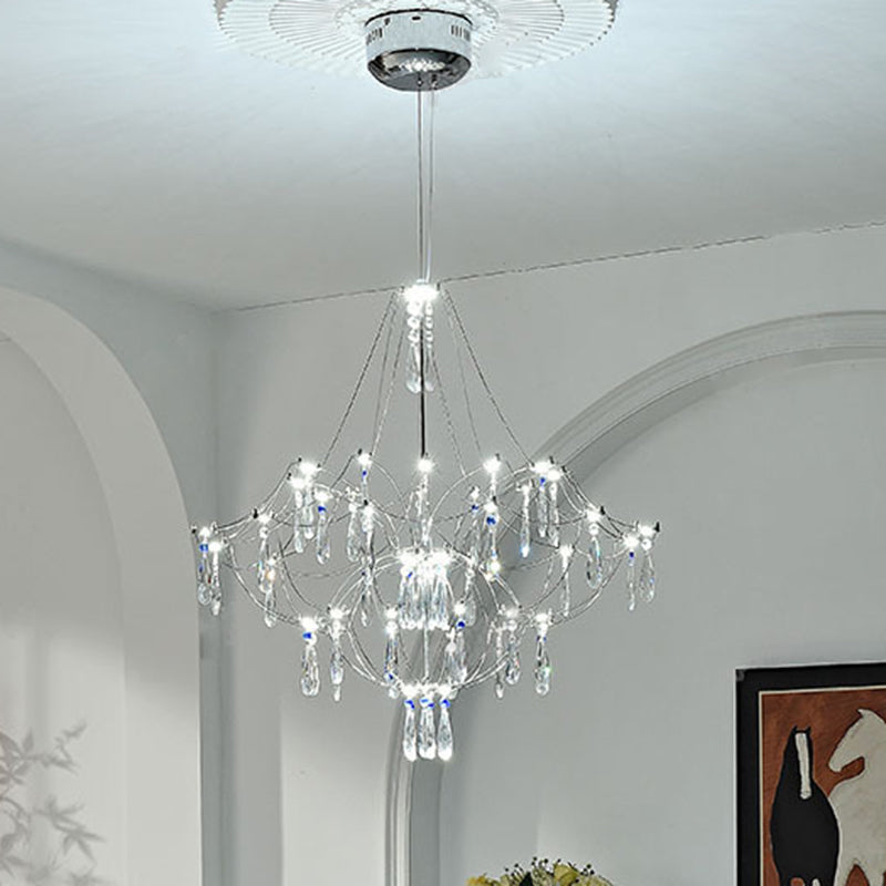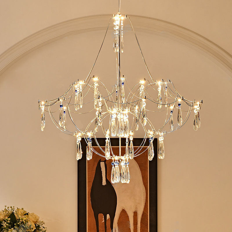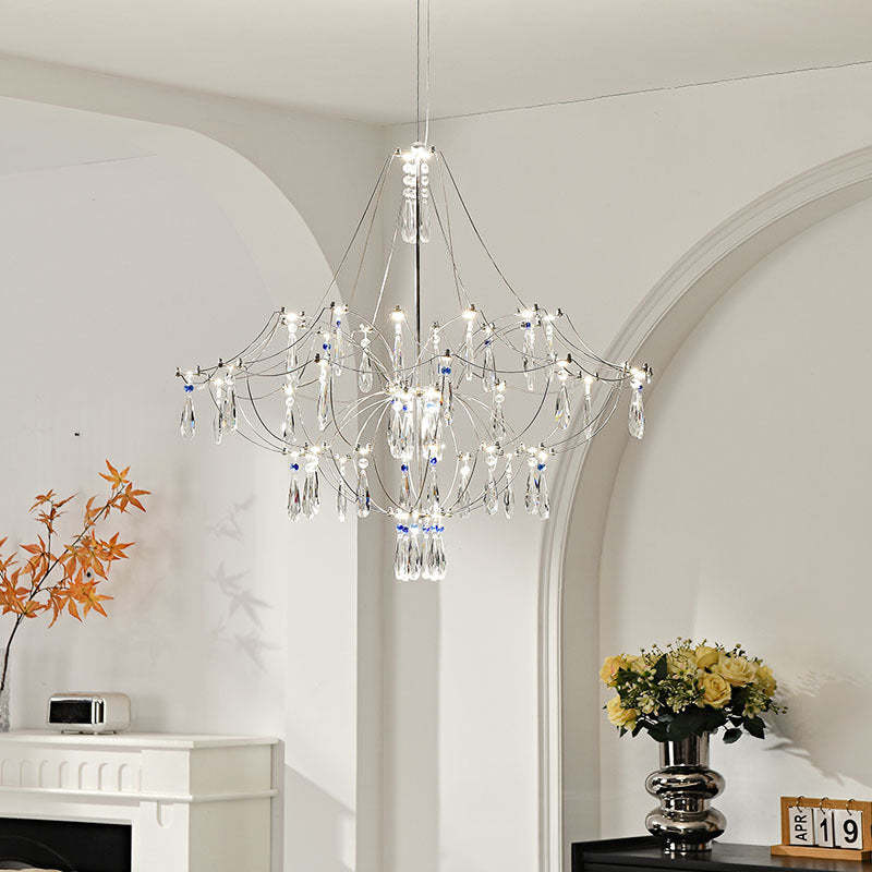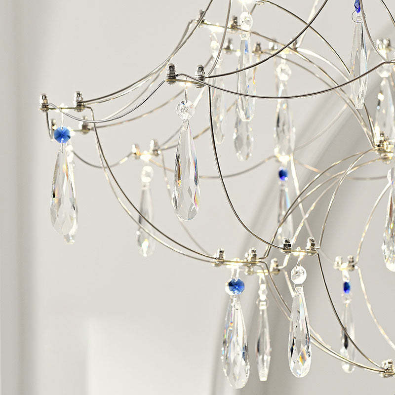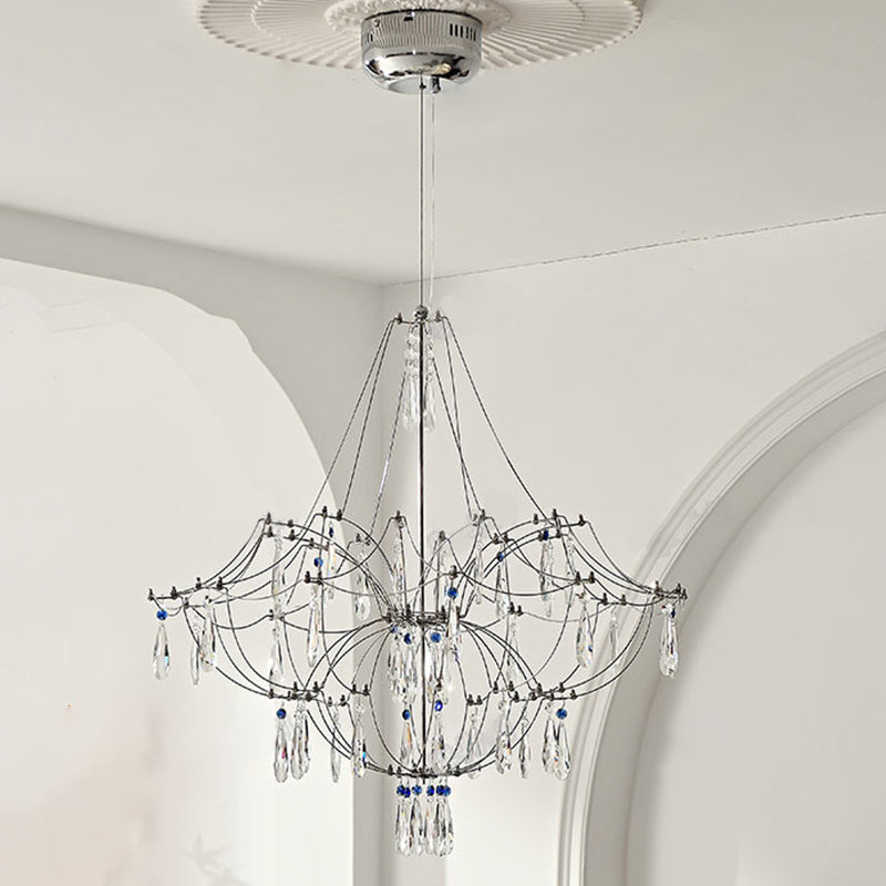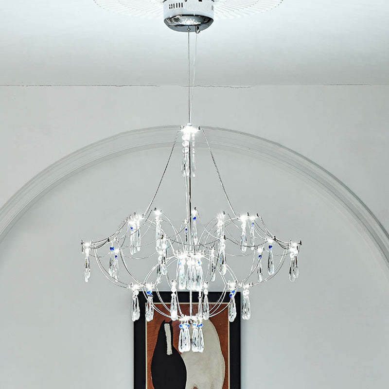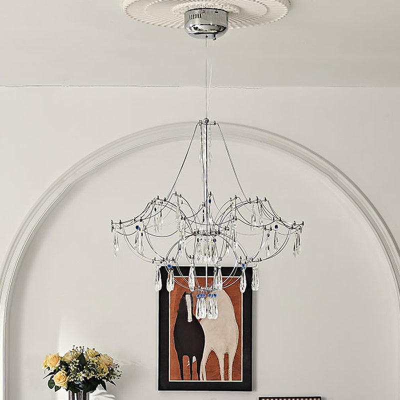Traditional French Dome Branch Water Drop Crystal Stainless Steel Hardware LED Chandeliers For Living Room