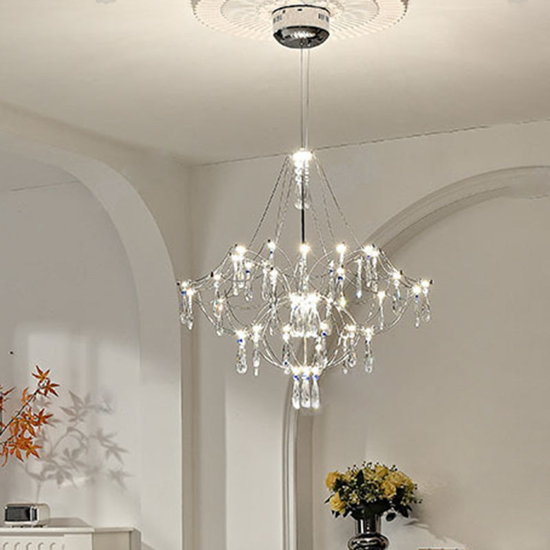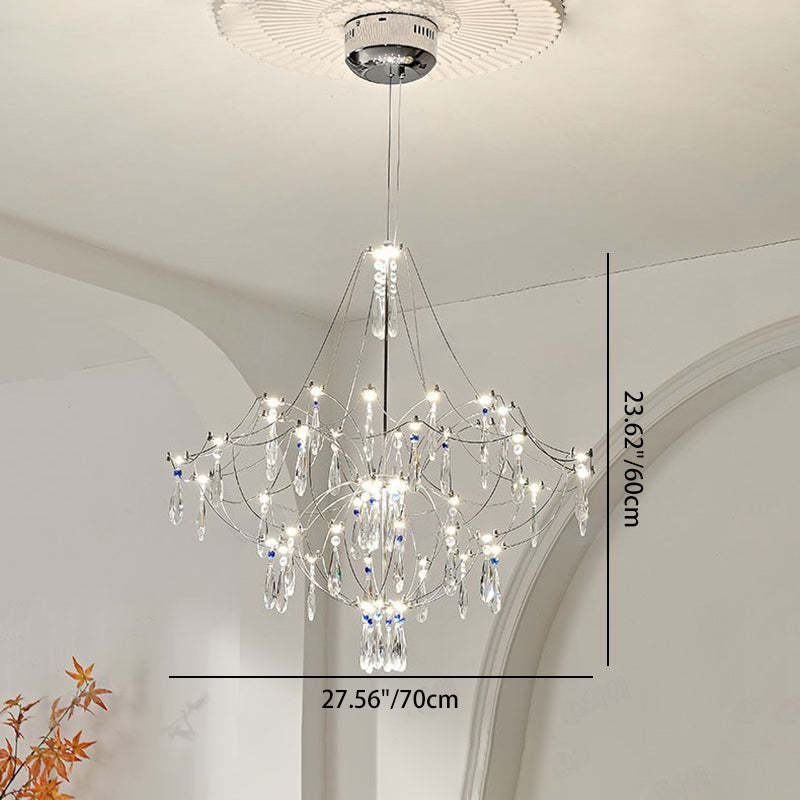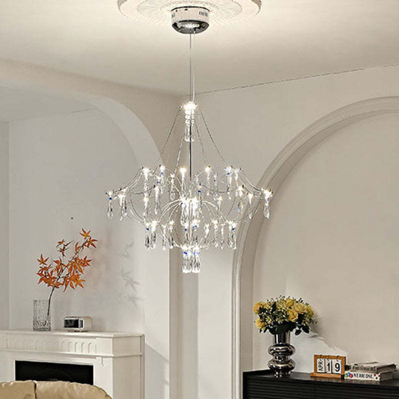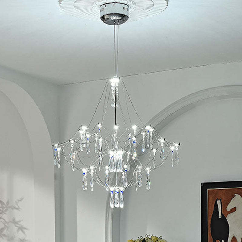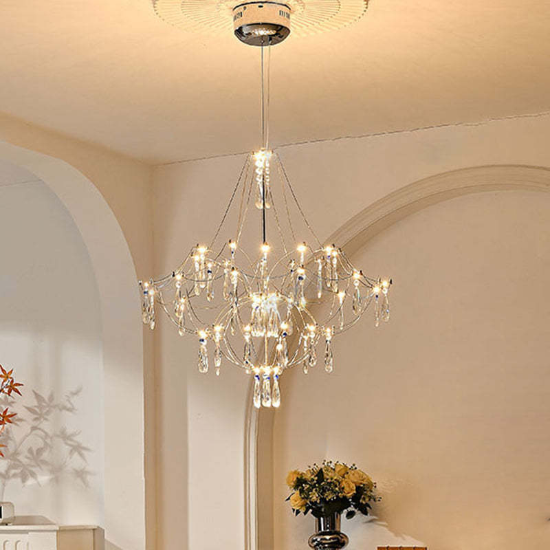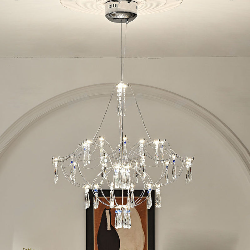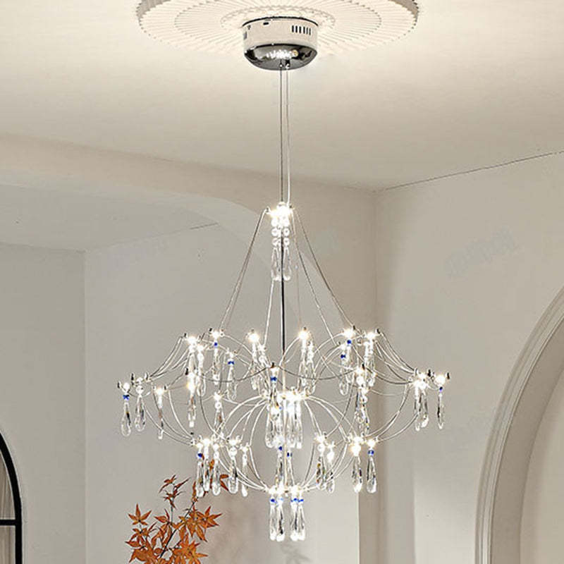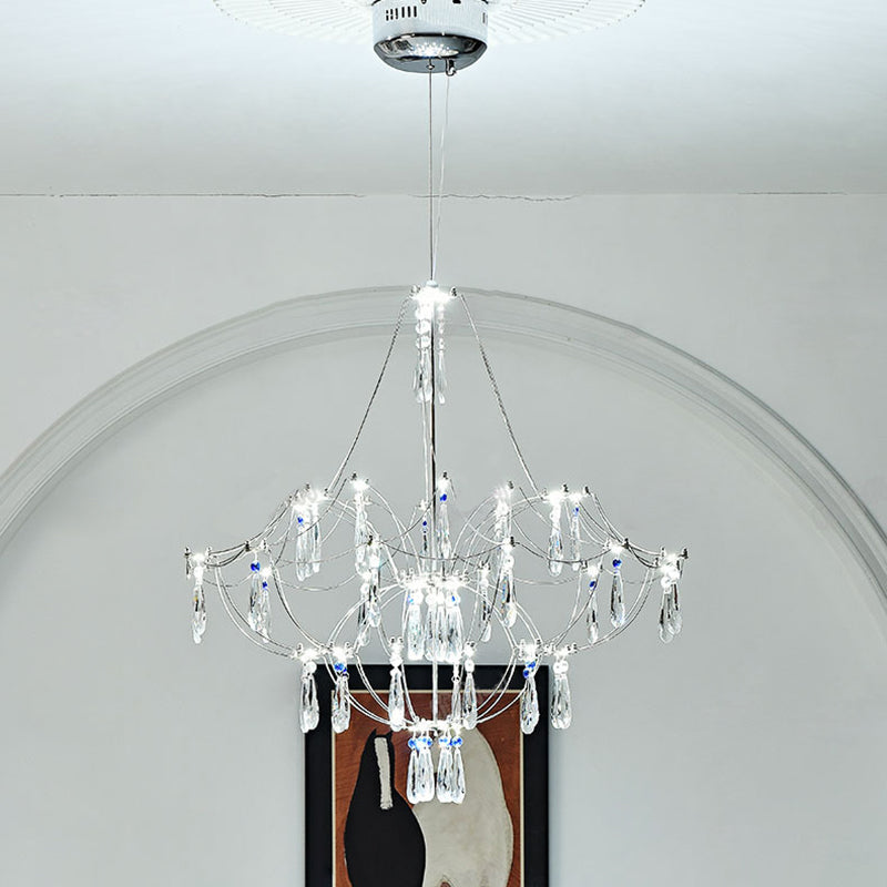 Traditional French Dome Branch Water Drop Crystal Stainless Steel Hardware LED Chandeliers For Living Room