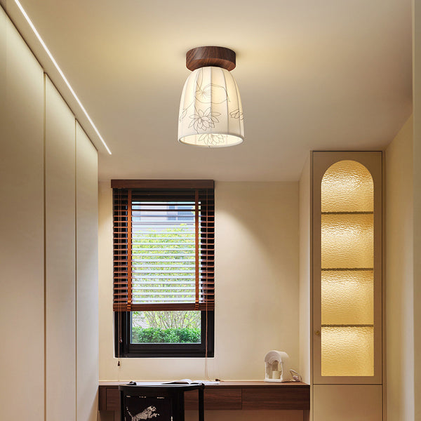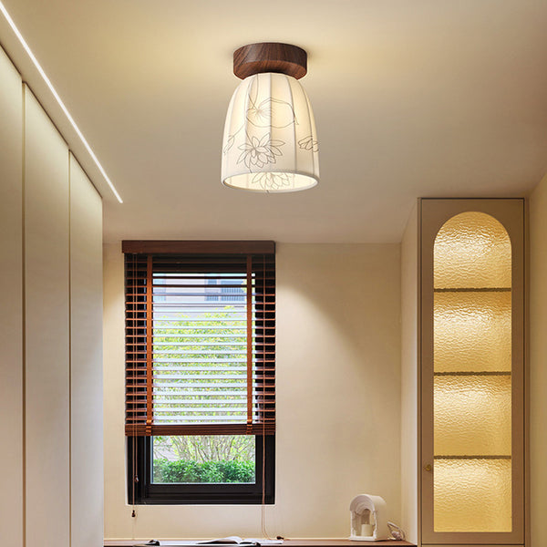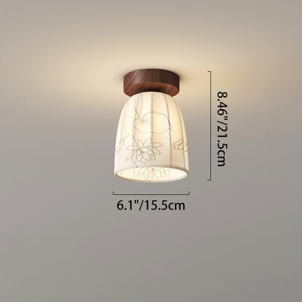 Traditional French Dome Semicircular Flower Print Iron Fabric 1 – Light Semi-Flush Mount Ceiling Light For Hallways