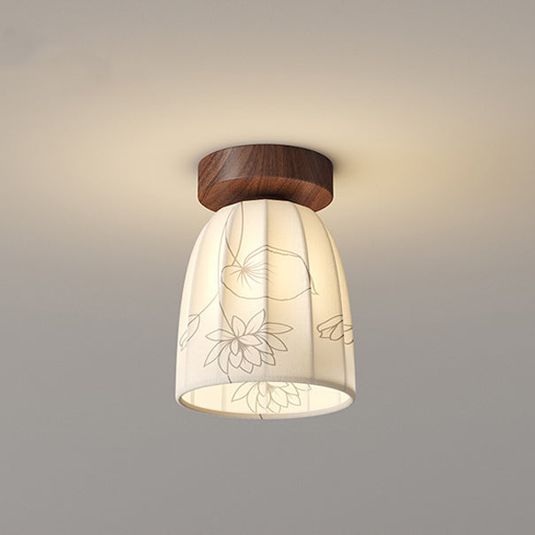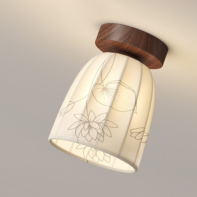Traditional French Dome Semicircular Flower Print Iron Fabric 1 – Light Semi-Flush Mount Ceiling Light For Hallways
