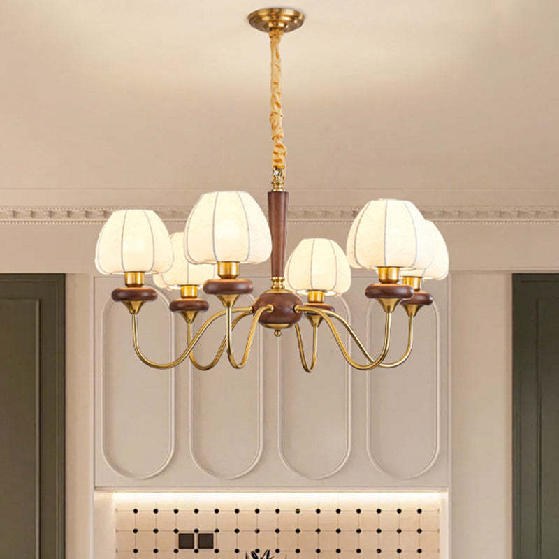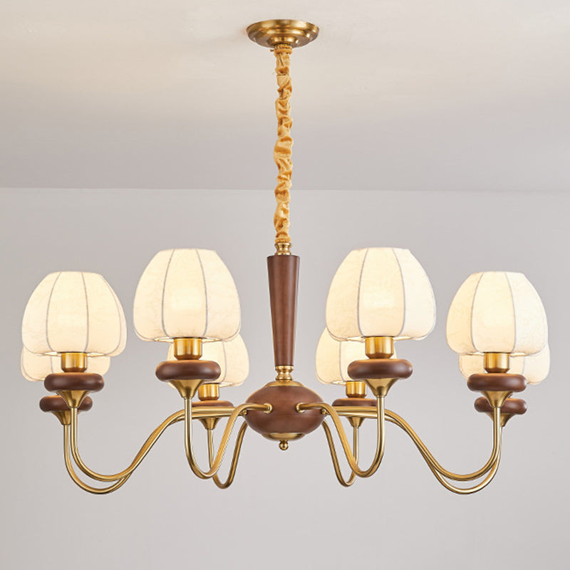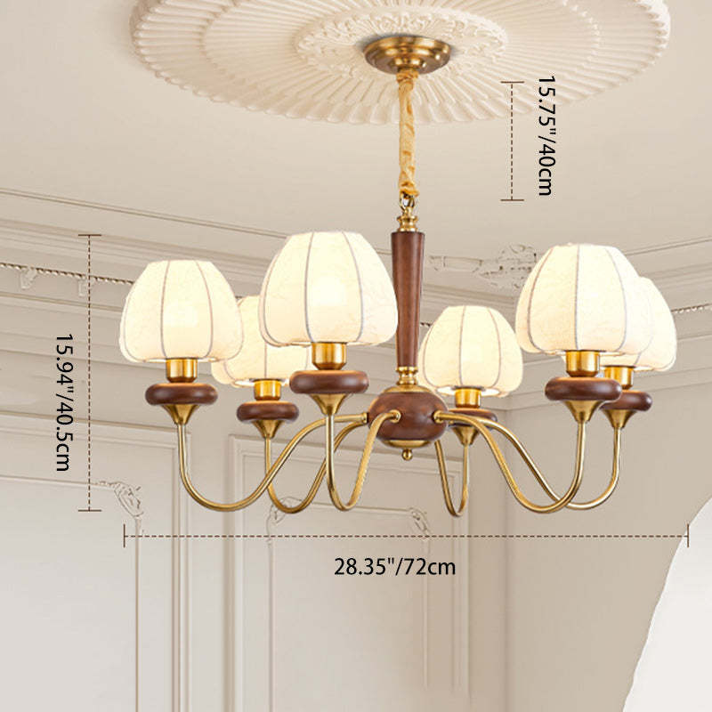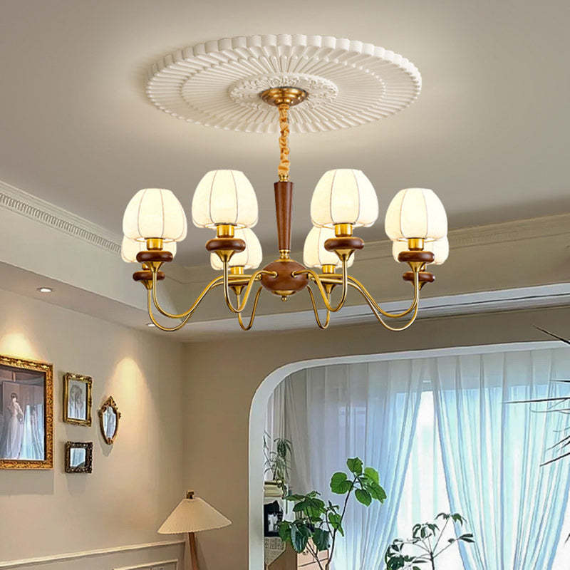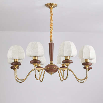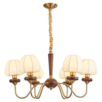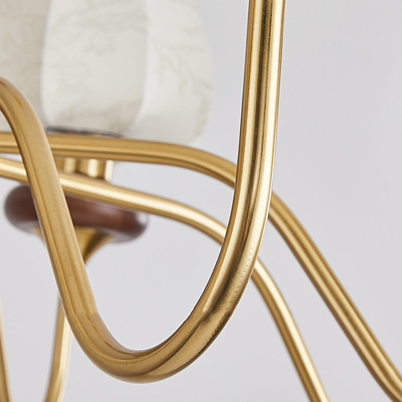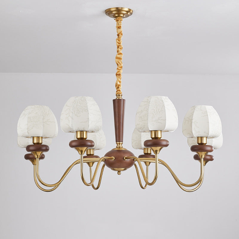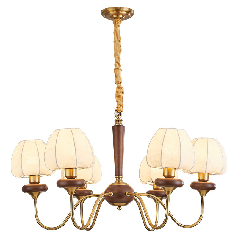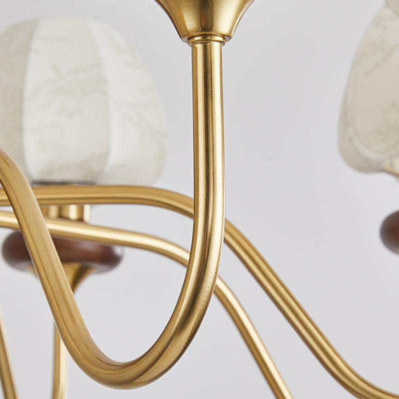Traditional French Fabric Wood Iron Curved Branch 3/6/8 Lights Chandelier For Bedroom And Living Room