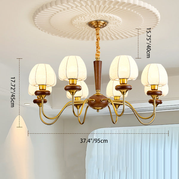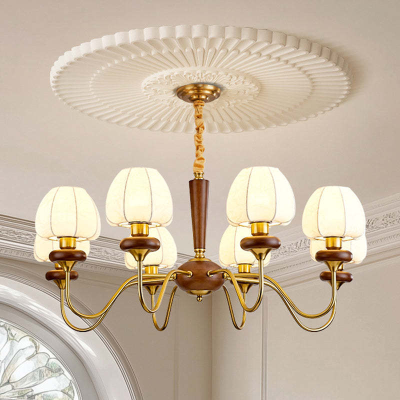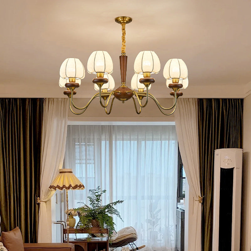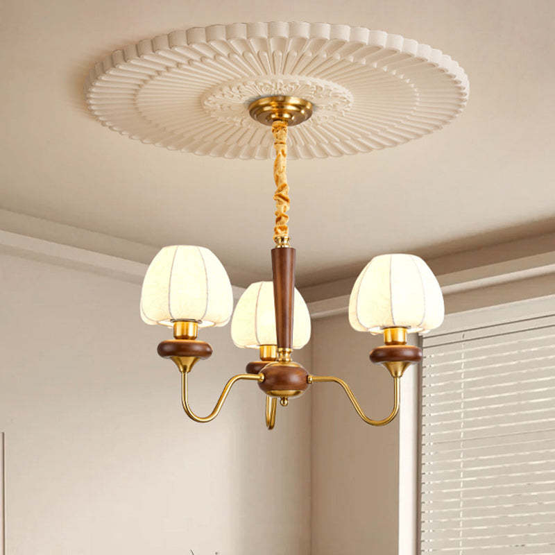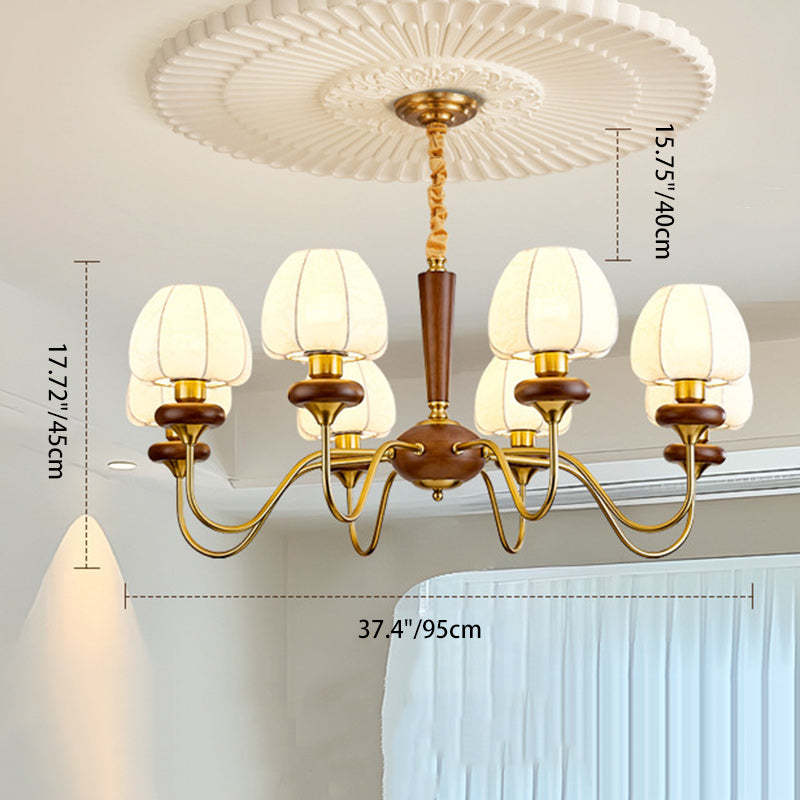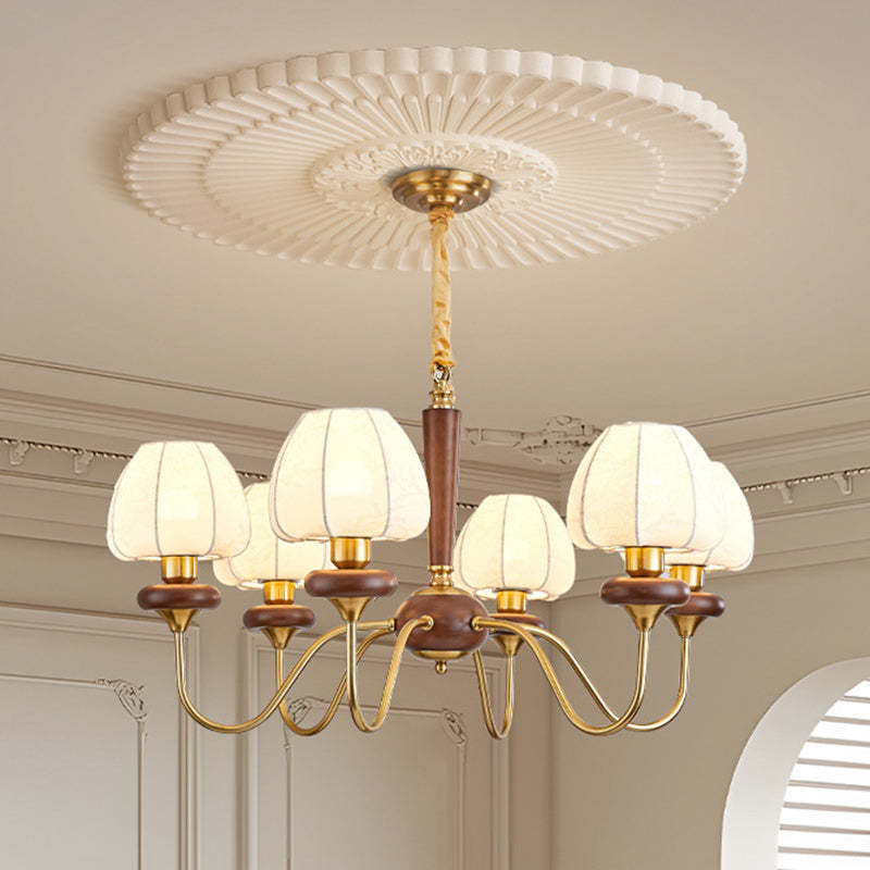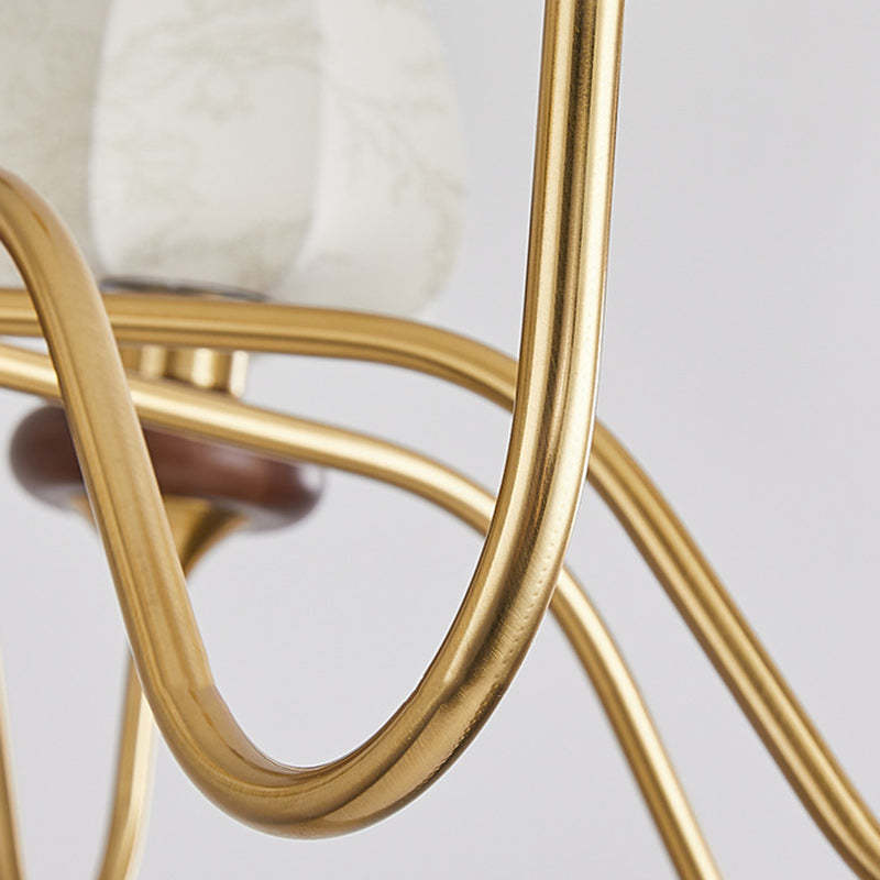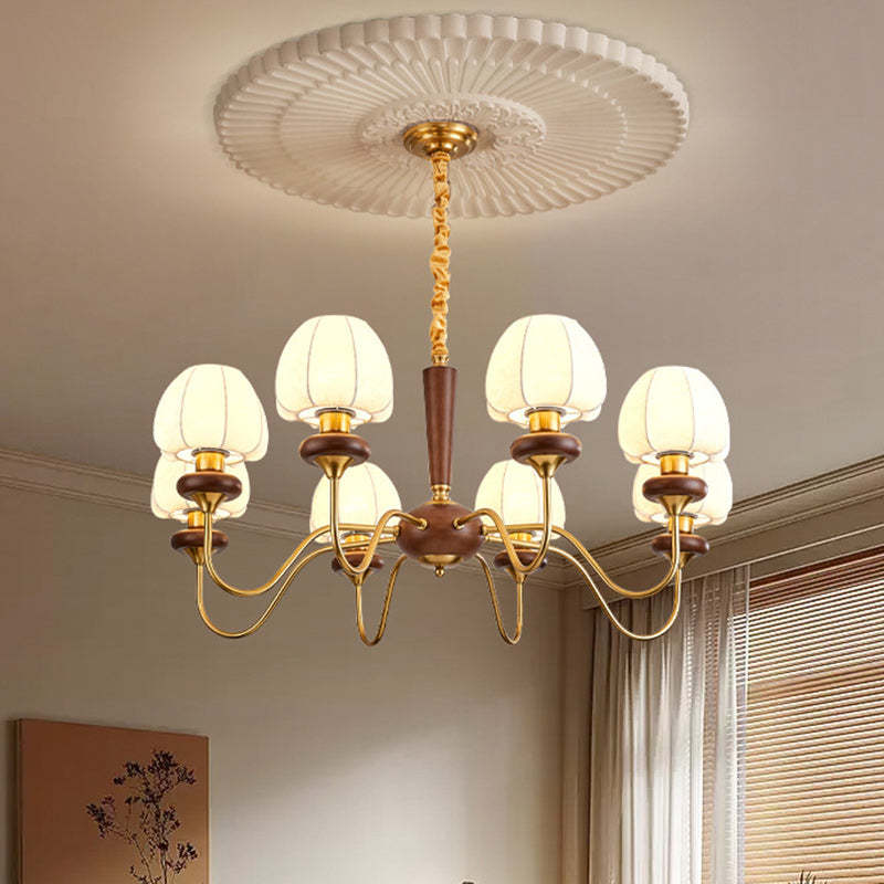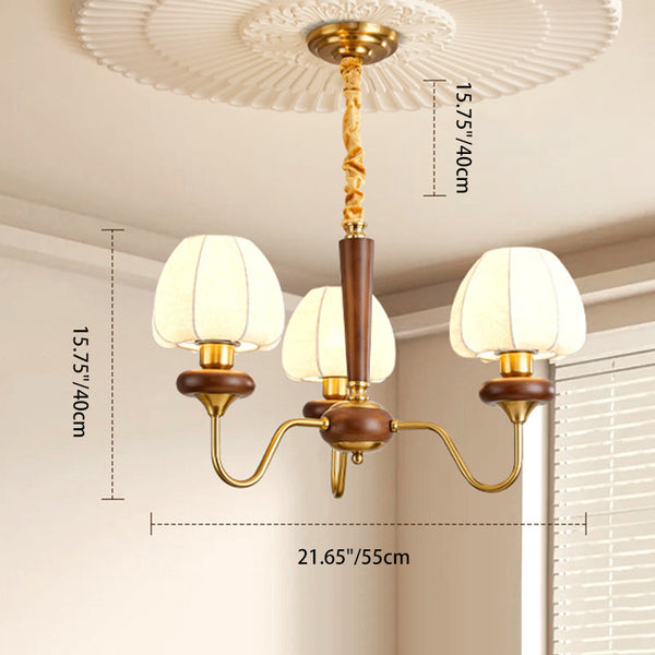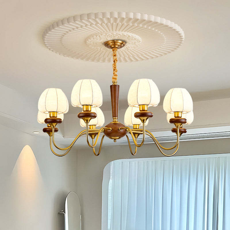 Traditional French Fabric Wood Iron Curved Branch 3/6/8 Lights Chandelier For Bedroom And Living Room
