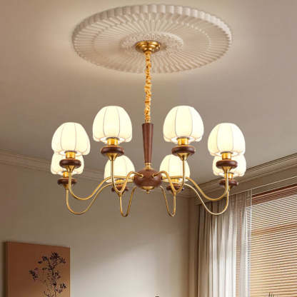 This Traditional French chandelier features a curved branch design with 3/6/8 lights. crafted from fabric. solid wood. and iron. The washable beige lampshade and non-flicker lighting bring warm elegance to any bedroom or living room d��cor. Ideal for vintage-inspired interiors.