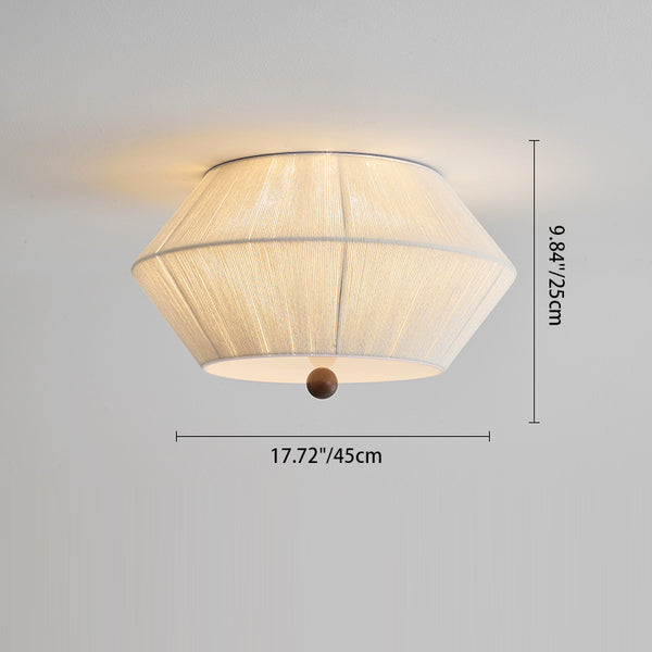 Traditional French Flying Saucer Shape Hemp Rope Wood 3-Light Flush Mount Ceiling Light For Living Room