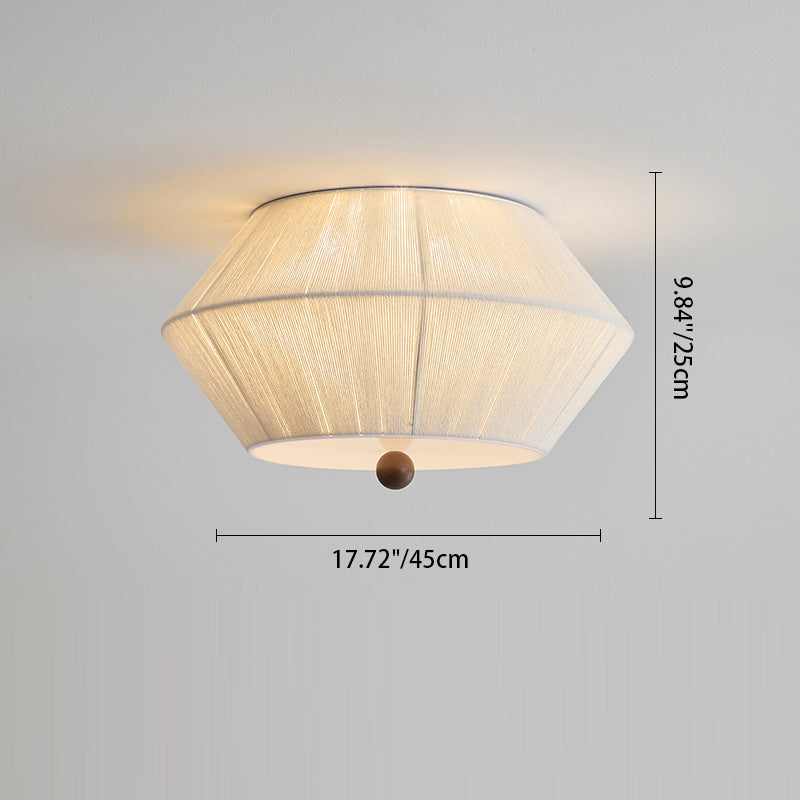 Traditional French Flying Saucer Shape Hemp Rope Wood 3-Light Flush Mount Ceiling Light For Living Room