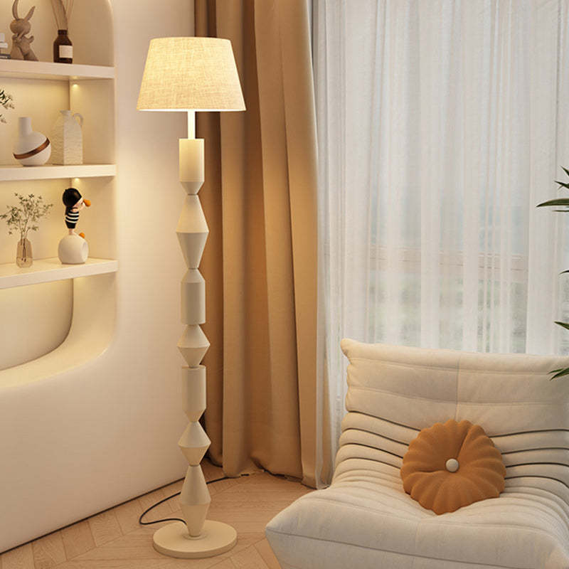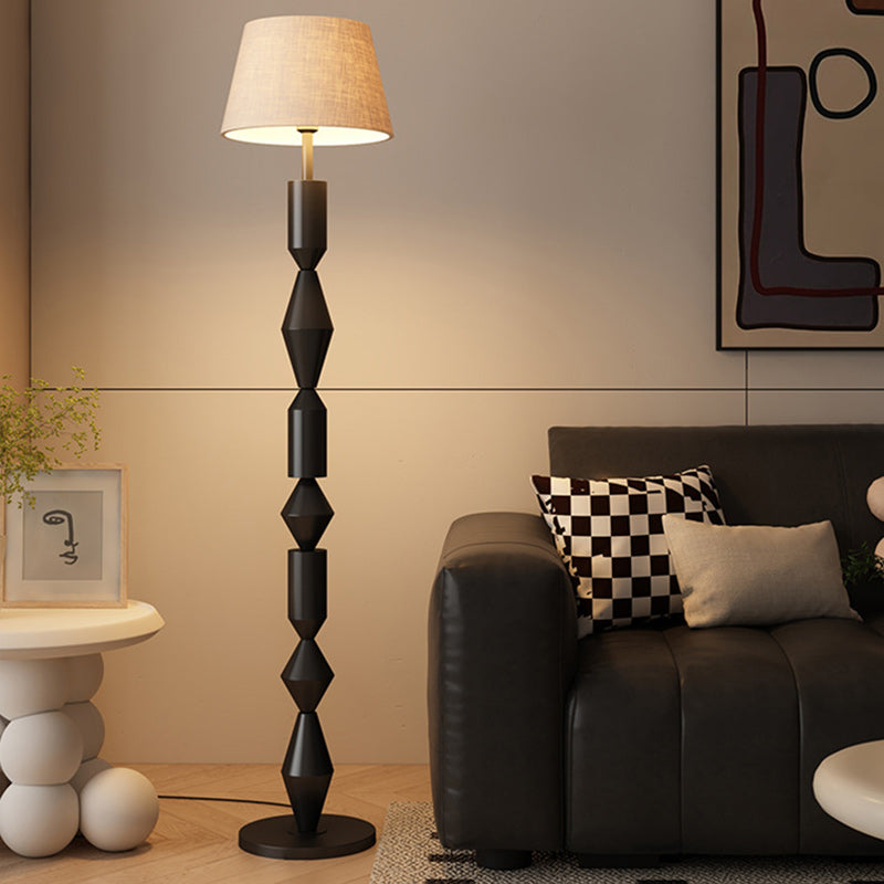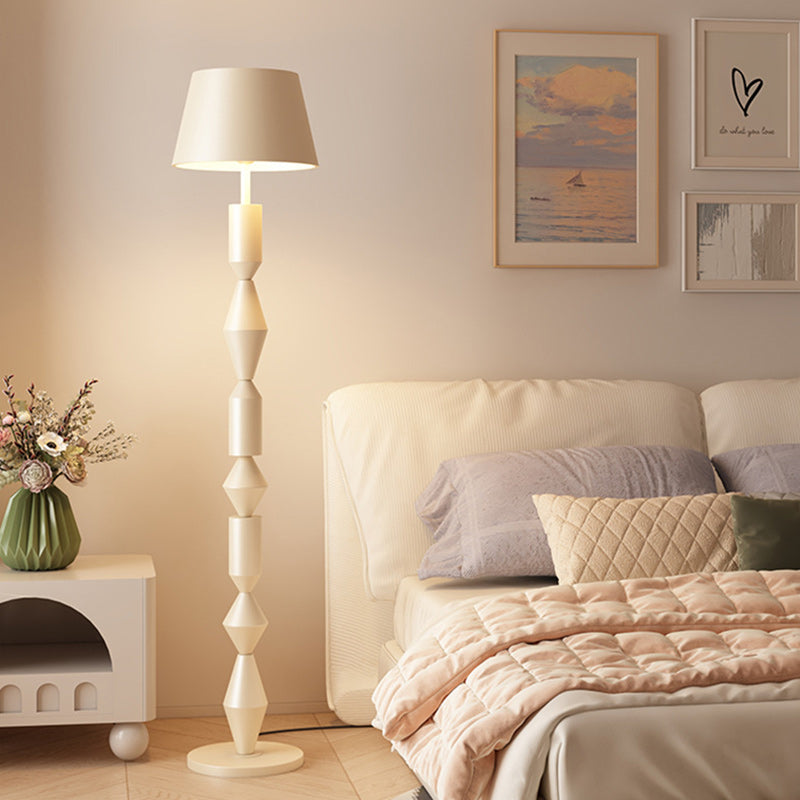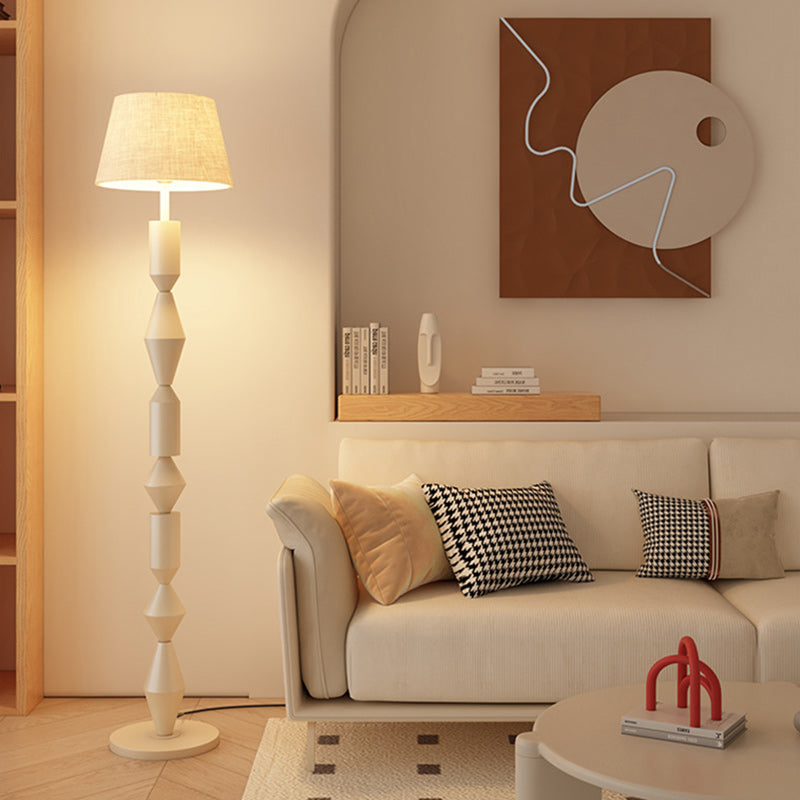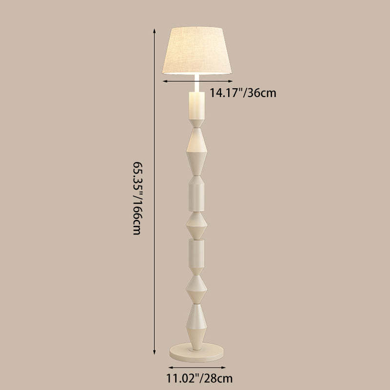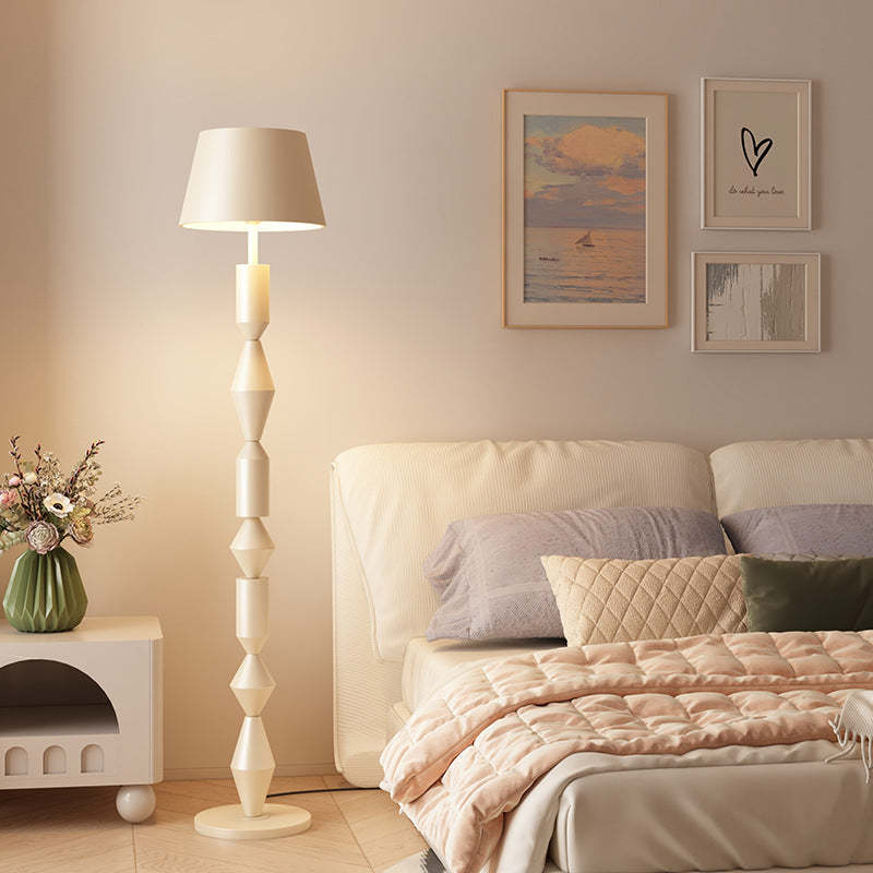 Traditional French Iron & Fabric Geometric Round 1-Light Standing Floor Lamp For Bedroom & Living Room
