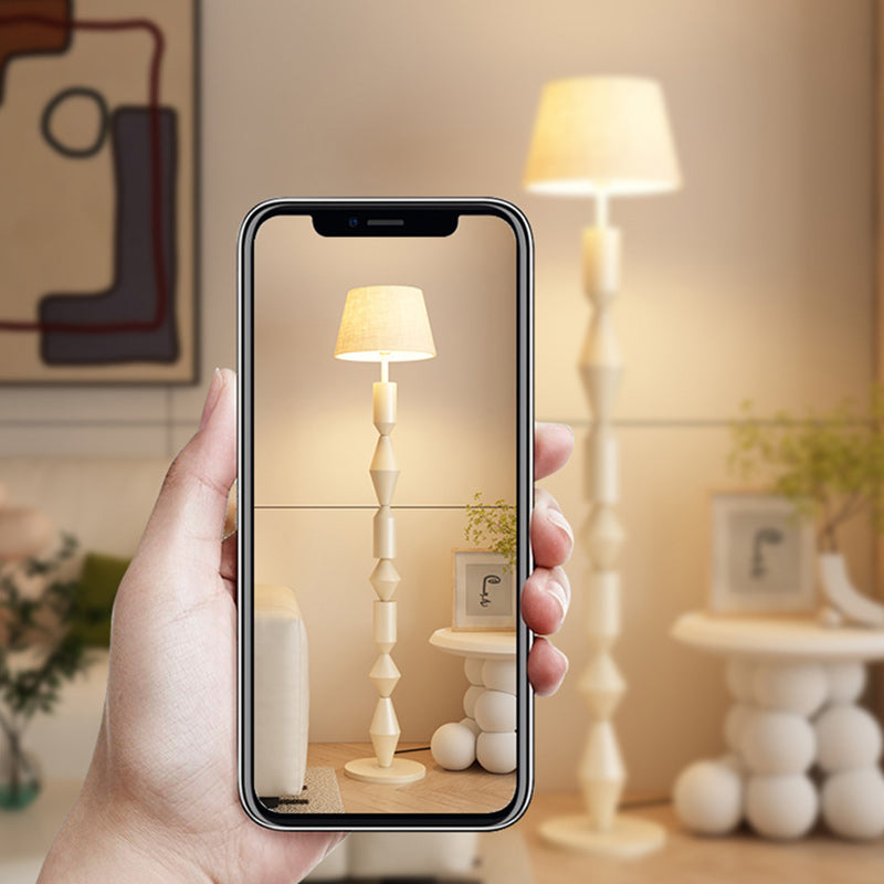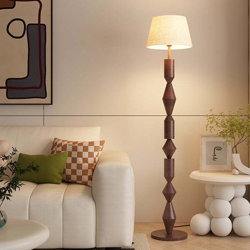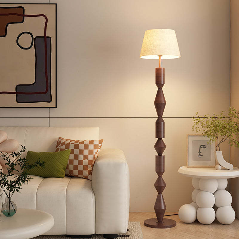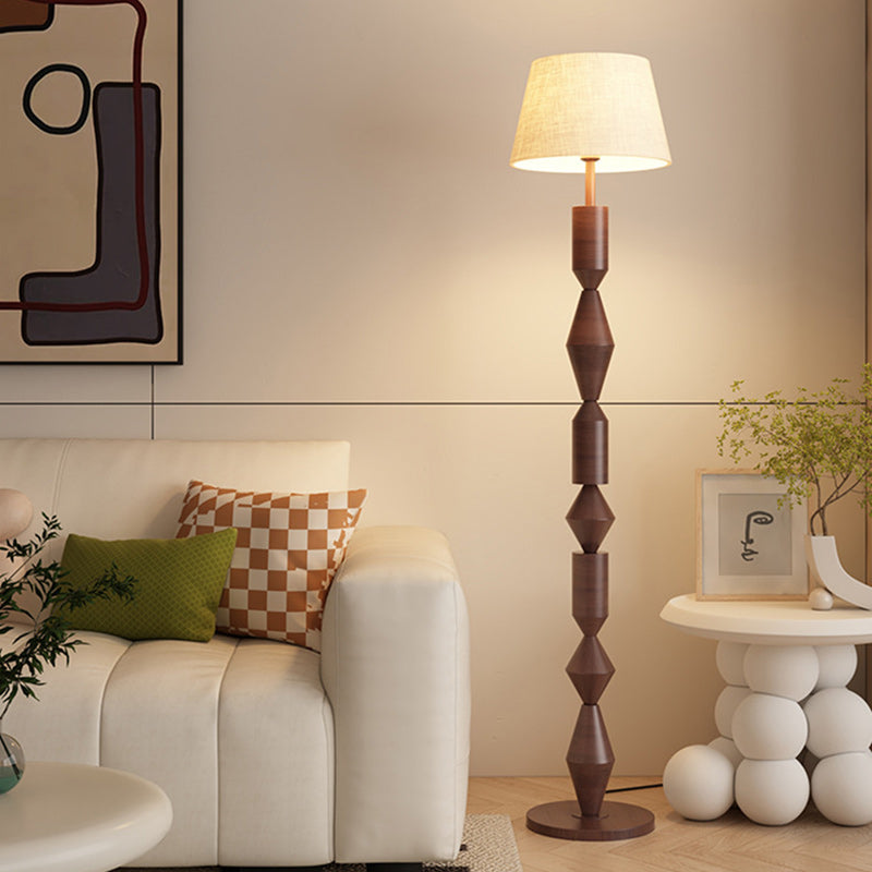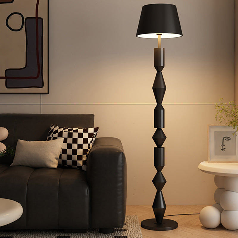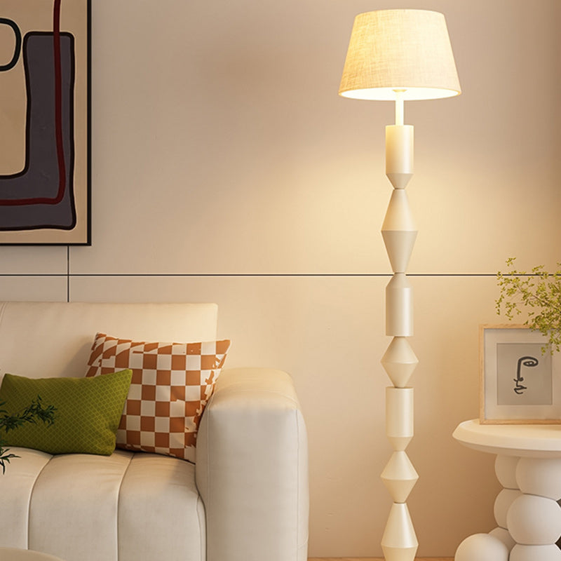 Traditional French Iron & Fabric Geometric Round 1-Light Standing Floor Lamp For Bedroom & Living Room