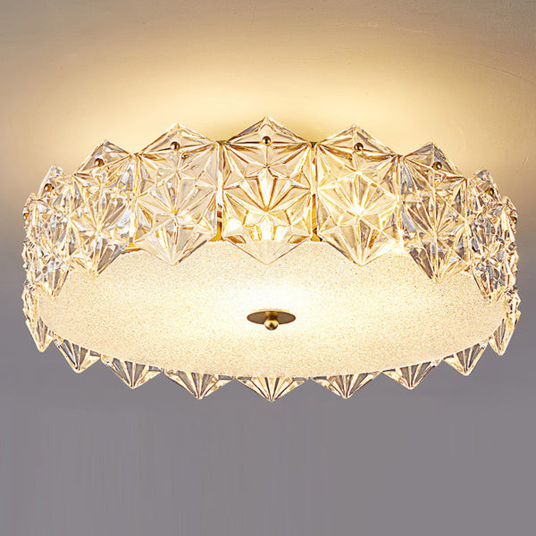 Traditional French Iron Glass Round 5/6/8-Light Semi-Flush Mount Ceiling Light For Living Room & Bedroom
