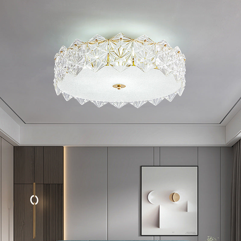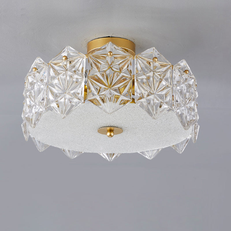 Traditional French Iron Glass Round 5/6/8-Light Semi-Flush Mount Ceiling Light For Living Room & Bedroom