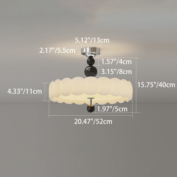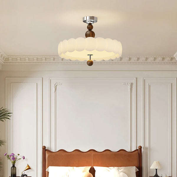 This French vintage-inspired semi-flush mount ceiling light features a unique cloud wave round design. crafted from PE and Iron. With soft. evenly diffused LED lighting. it creates a warm. glare-free atmosphere??perfect for dining rooms and living spaces in black and walnut tones.