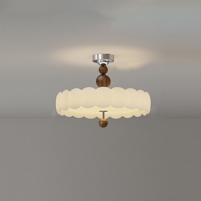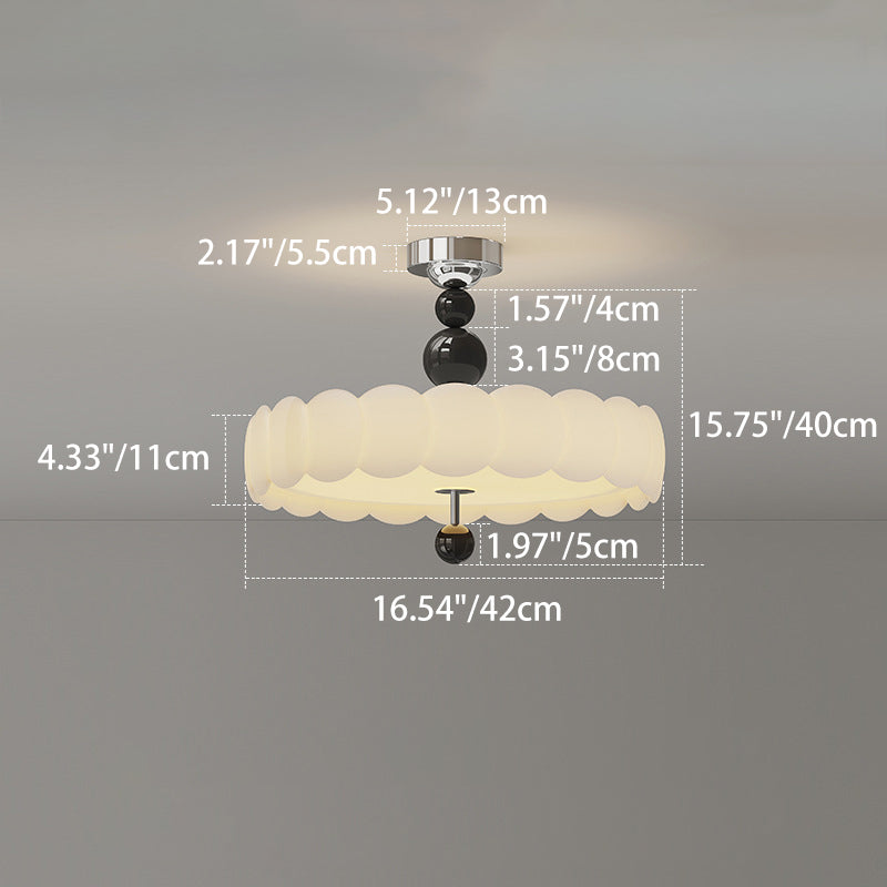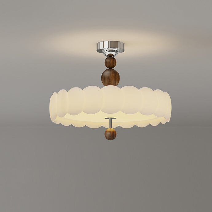 This French vintage-inspired semi-flush mount ceiling light features a unique cloud wave round design. crafted from PE and Iron. With soft. evenly diffused LED lighting. it creates a warm. glare-free atmosphere??perfect for dining rooms and living spaces in black and walnut tones.